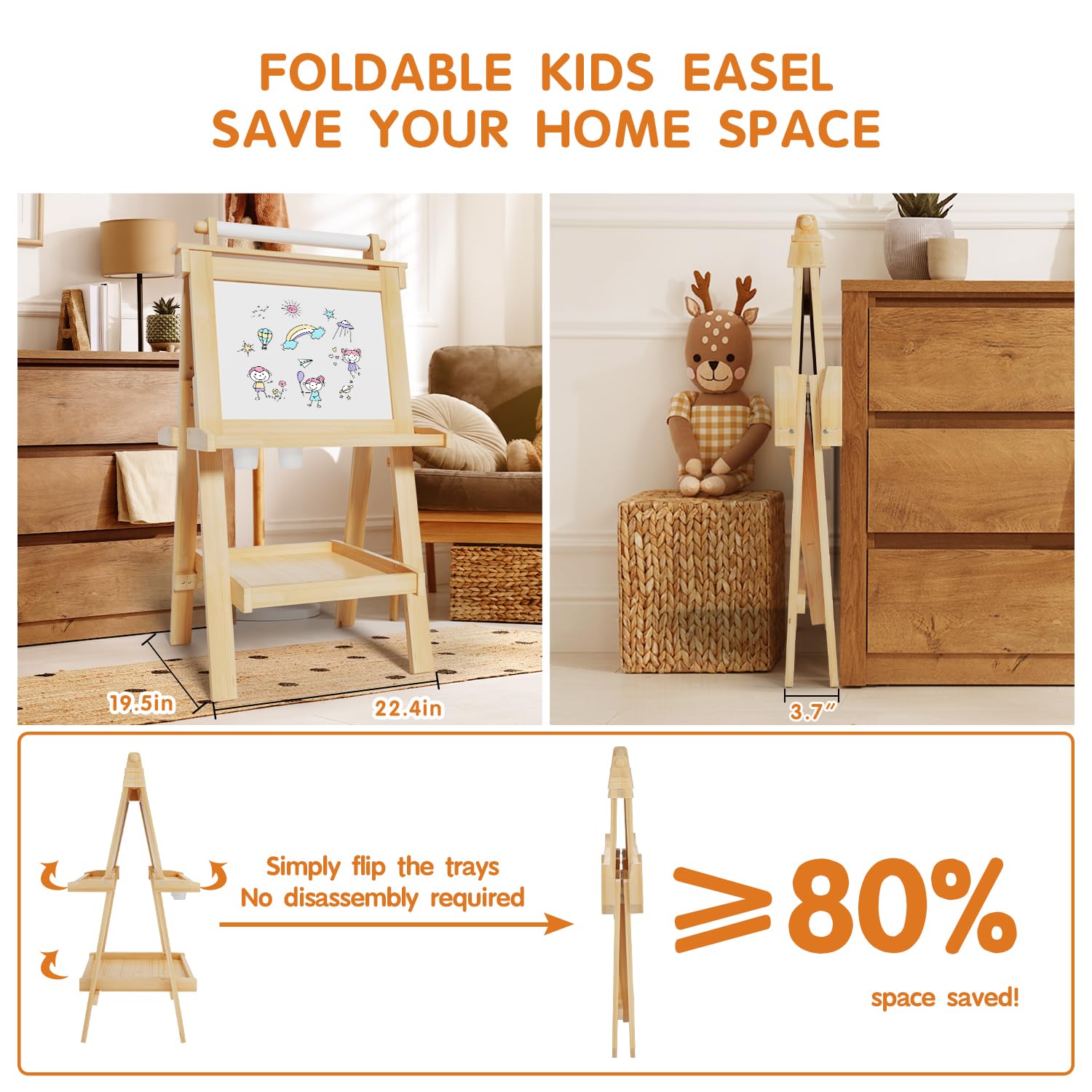 • Q: Is the easel easy to assemble and fold? A: Yes, the JUZBOT Easel is easy to install, with the main body pre-assembled. It features a unique foldable design that allows parents to fold it without disassembly, saving space at home.