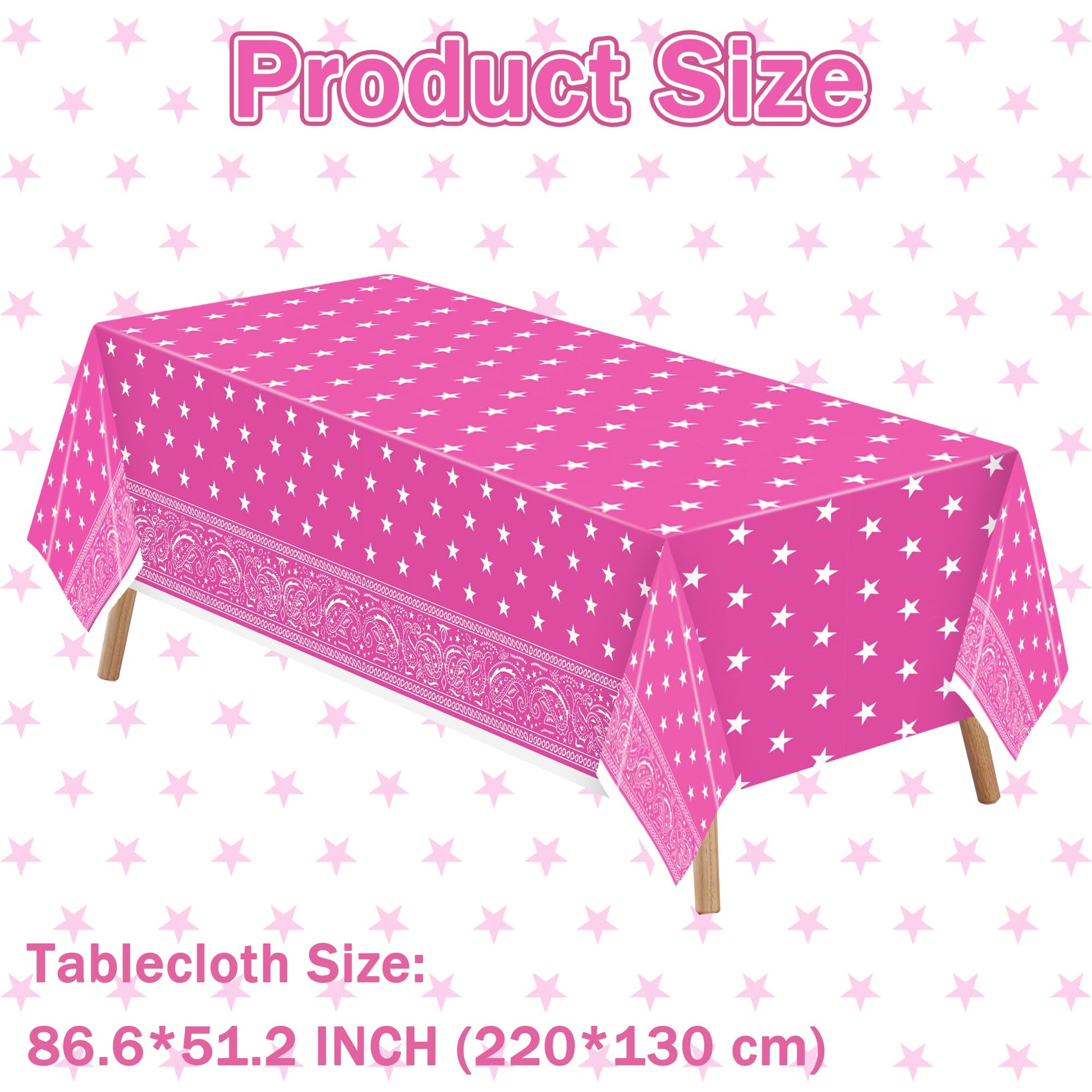 K1Tpde Pink Bandana Plastic 3Pcs Tablecloths, 87X51 Inches/ 9.8X7.2 Feet, Western Party & Cholo Theme Decorations, Pleated Corner Style, All-Season