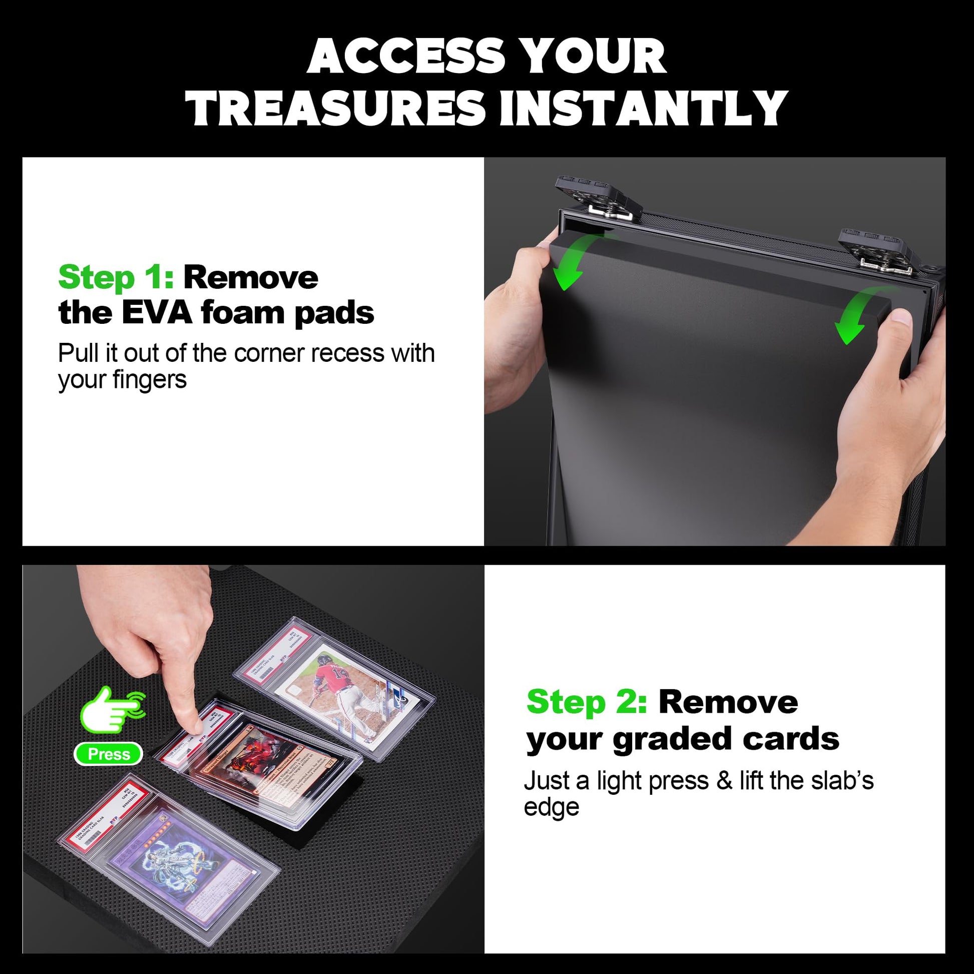 Kabinka Graded Card Storage Box with Display Window for PSA/CGC Holder TSA Combination Lock Trading Deck Case for Sports Cards Storage Slab Case with 6+2 EVA Dividers for MTG/TCGs(Black)
