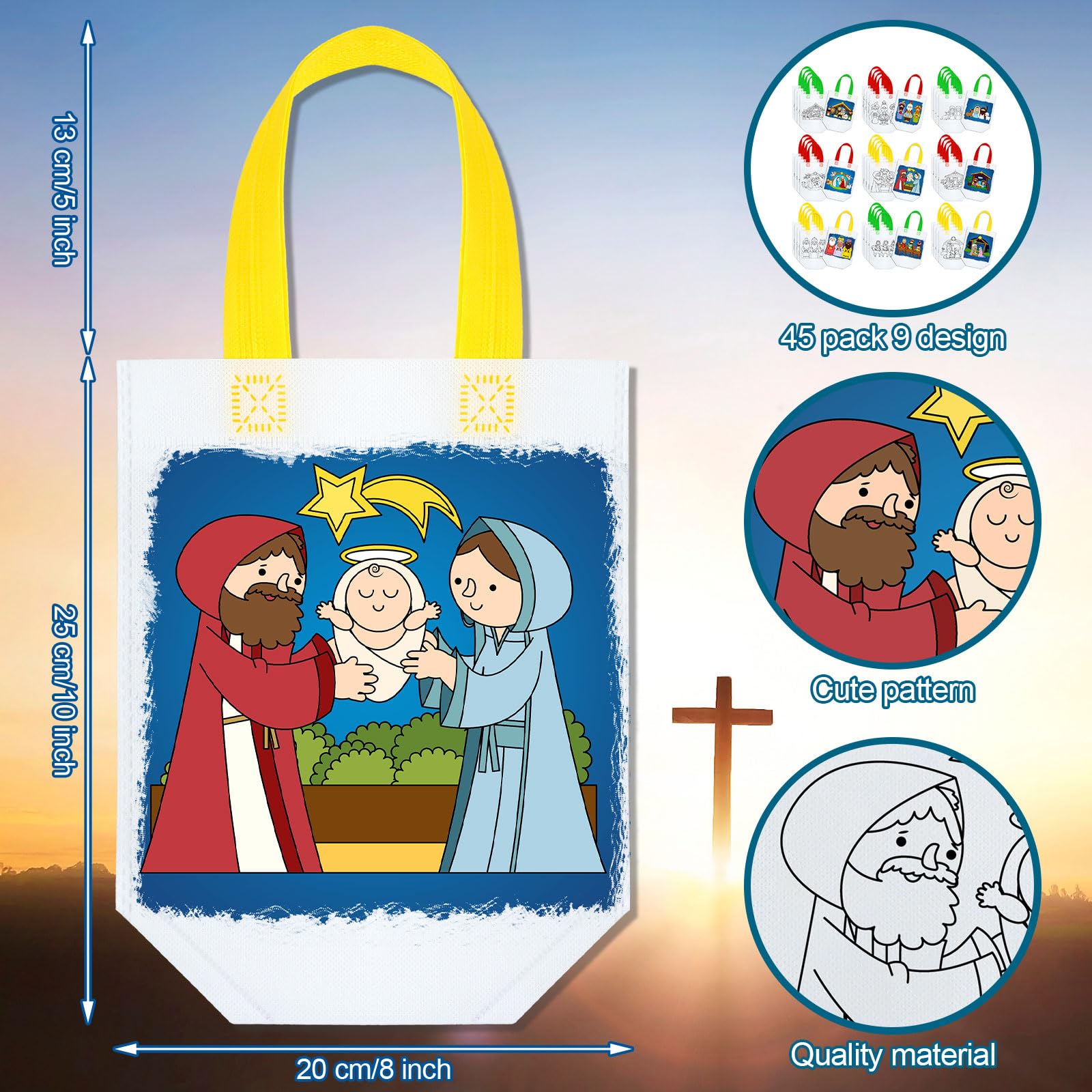 Kacctyen 45 Pcs Farm Animals Color Your Own Goodie Bags Reusable Coloring Art Party Favor Paint Graffiti Bags for Farm Theme Bar