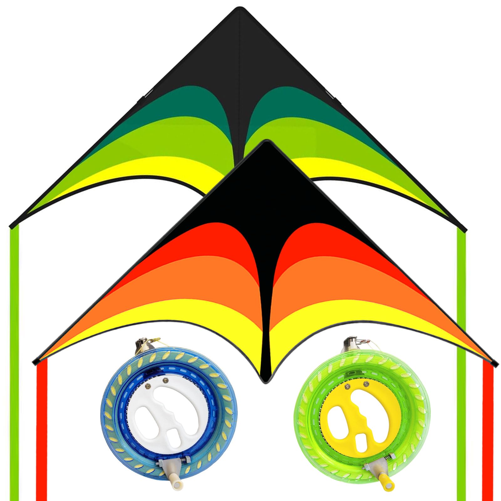 Kaiciuss Delta Kite & Reel Set, Double Delta Kites and Double 7.1 Wheels Included, String Spools Come with Safety Lock and 650 F