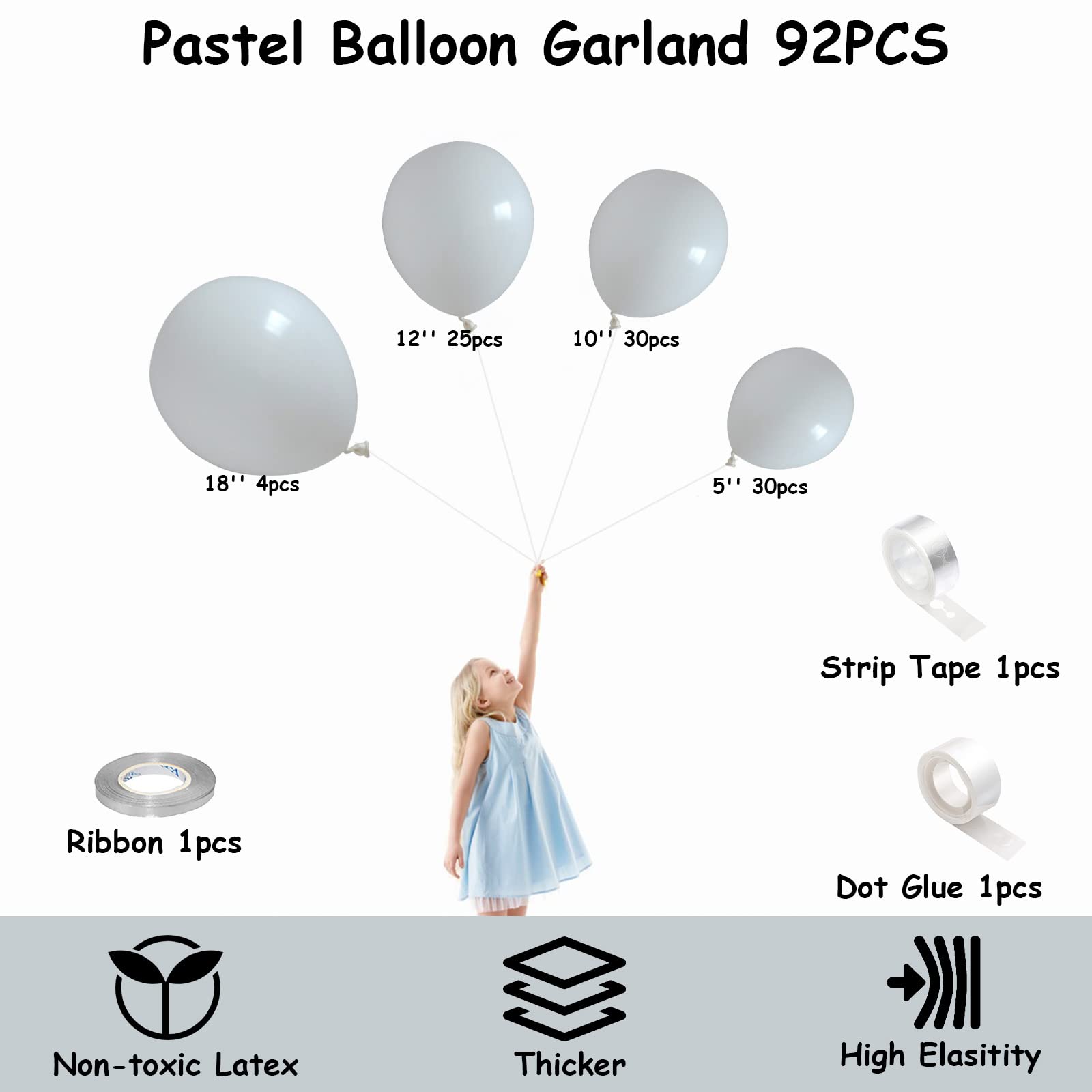 5/10/12/18 Inch Pastel Ballon: Kainsy Balloon Garland Kit, A Value Pack Of 92Pcs Pastel White Balloons Kit, Includes Pastel White Balloons With Different Sizes: 5'(30Pcs), 10”(30Pcs), 12”(25Pcs), 18”(4Pcs), A Roll Of Balloon Strip And 1 Sheet Dot Glue, 1Pc Matching Color Ribbons | Premium Latex Balloons: Made Of 100% Natural Latex Material, Kainsy Macaron Party Balloons Are Not Only Thicker And Sturdier, Not Less Likely To Pop, But Non-Toxic, Eco-Friendly And Safe To Be Used Around Children, Suitable For Baby Showers, Kids Birthday | Widely Used Decoration: Pastel Balloon Arches, Great Decorations For Birthday Parties, Weddings, Bridal Showers, Engagement Parties, Gender Reveal Balloons; Make A White Balloon Garland Arch, Or Mix And Match With Other Colors To Make A Colorful Balloon Garland, Such As Rainbow, Perfect For Indoor Or Outdoor Activities | Easy To Assemble: Pastel White Balloons Are Easily Inflated With Air Or Helium, Diy The Balloon Arch By Yourself With Different Sizes Balloons; Take Care To Keep The Inflated Balloon Away From Sharp Objects, Ground Sand, Etc; For Best Results, Please Assemble Them Within 24 Hours Before The Party | Customer Service Guarentee: If You Don’T Satisfied With These Fashion Balloons, Please Feel Free To Contact Us, We Will Response You Within 24 Hours And Provide The Best Service For You