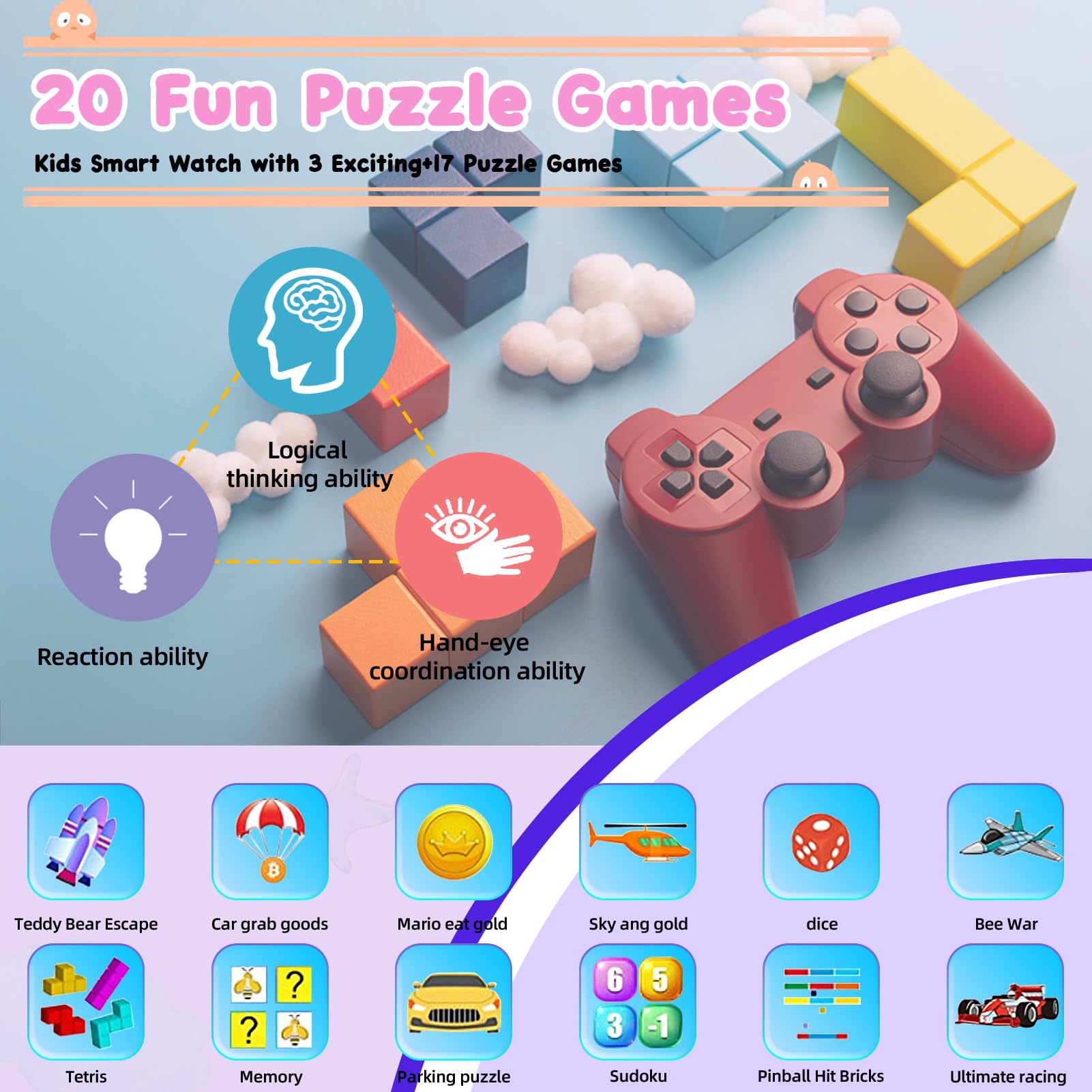 Kaktin Multifunctional Kids Smartwatch Has 1.44-Inch Touch Screen Kids Smartwatch With New Features Of Sound, Good Habits, Sports, And 3 Fun Themes For Learning. And Include Rich Features, 20 Puzzle Games, A Camera, Video, Recording, Music, Alarm Clock, Stopwatch, Calendar, 12/24 Hour Analog Clock, Etc. Meet Your Child'S Daily Use And Bring More Fun To Explore And Learn. Kids Digital Watch Supports Self-Timer, Video Recording, Music Playback, And 10 Fun Kids Songs Built-In, Soft And Comfortable To Wear, Easy To Use, Popular Girls Toys, Learning Toys, Great Christmas Birthday Gift For 3-10 Years Old Boys Girls.