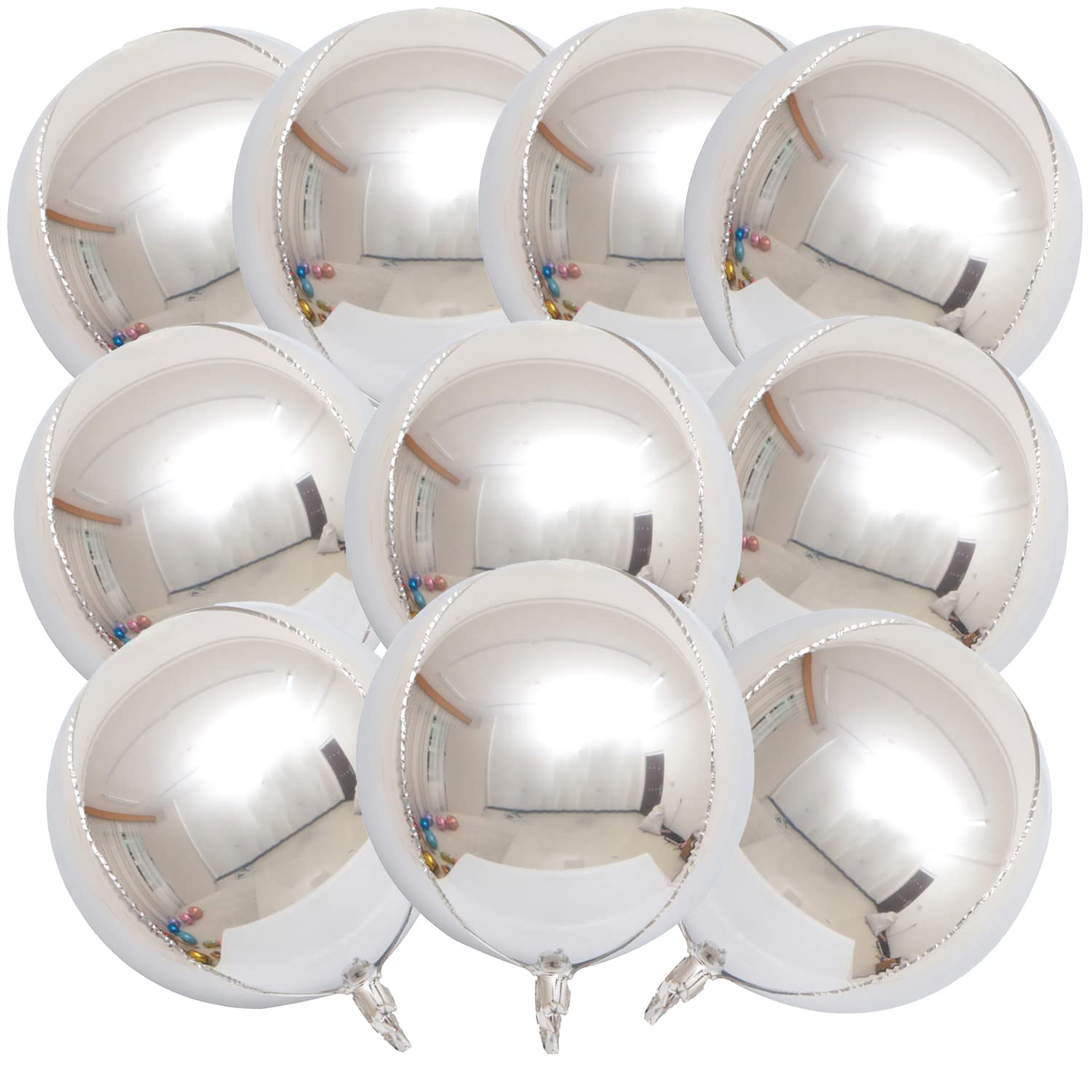 Kalor 10 Pcs 22 Inch Silver Mylar Balloons, Large 4D Giant Round Foil Balloon Big Mirror Metallic Balloons For Birthday Party Baby Shower Gender Reveal Supplies