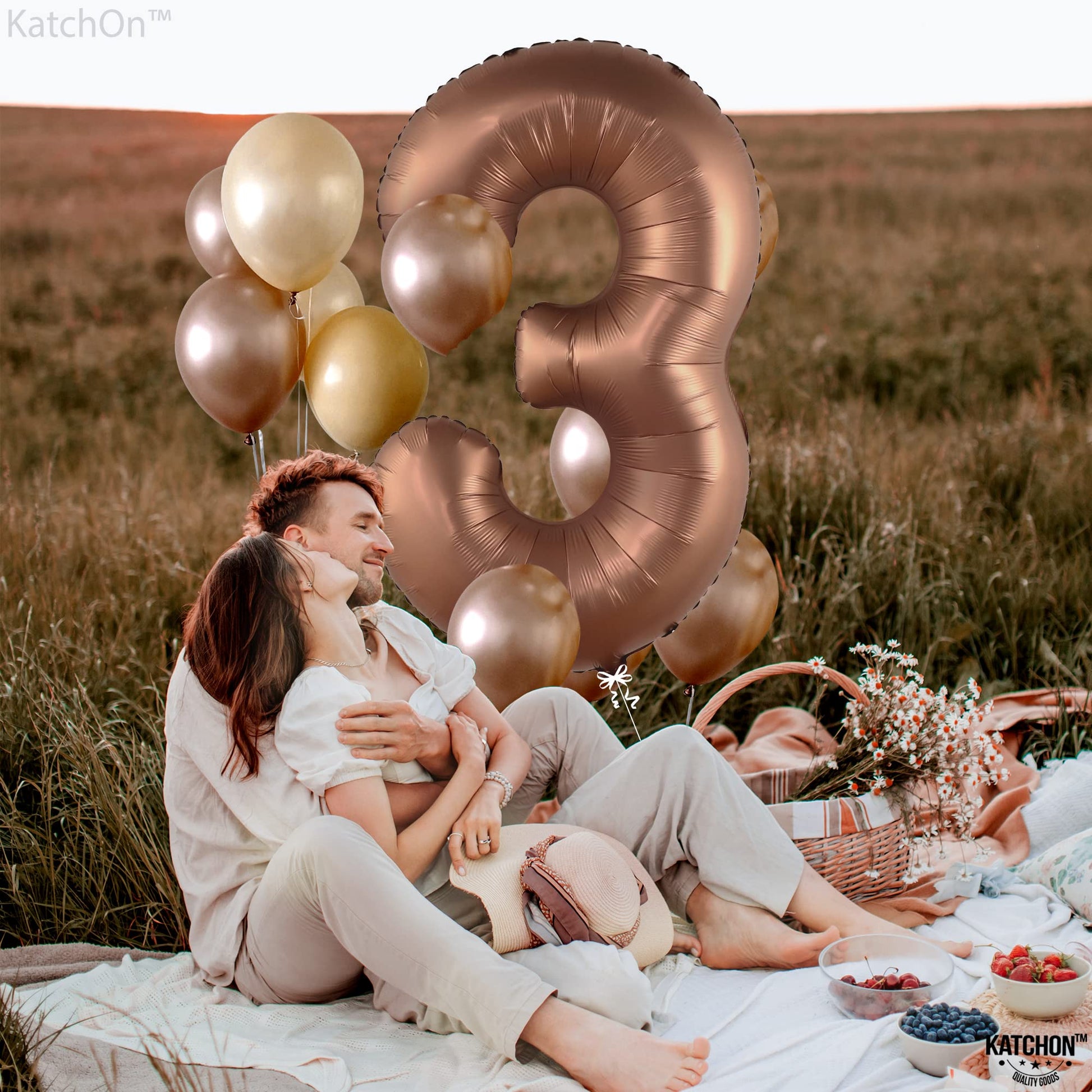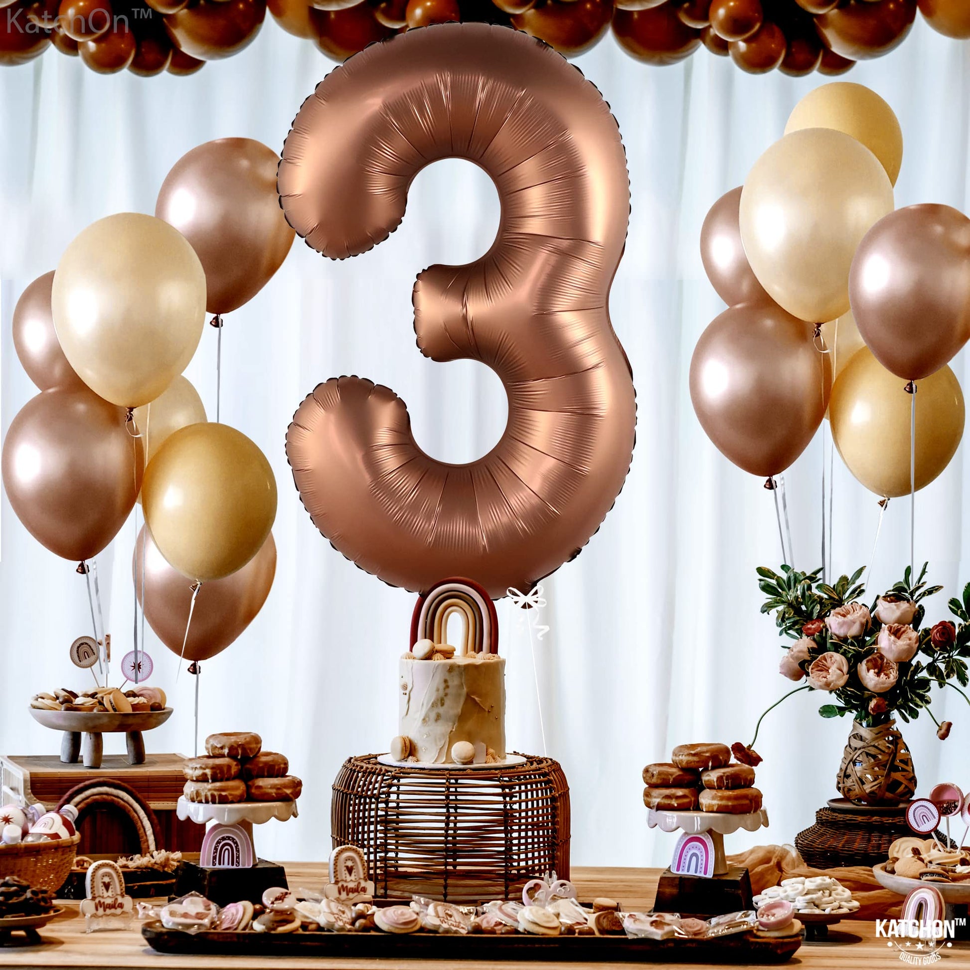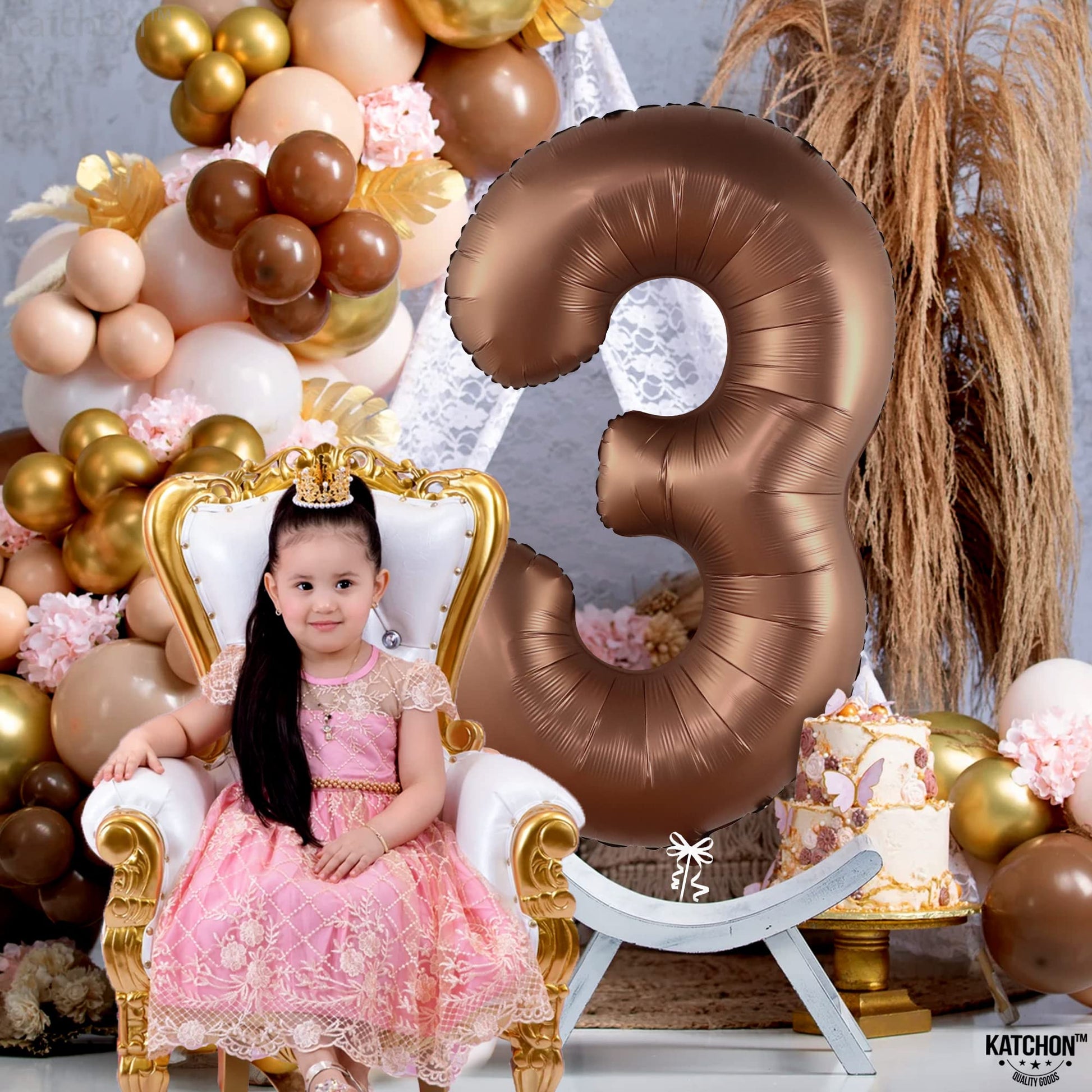 Katchon, Coffee Brown Number 3 Balloon - 40 Inch | Giant, 3 Balloon Number, 3Rd Birthday Decorations For Girls | 3Rd Birthday Decorations For Boys | 3 Year Old Birthday | Dinosaur 3Rd Birthday Decor
