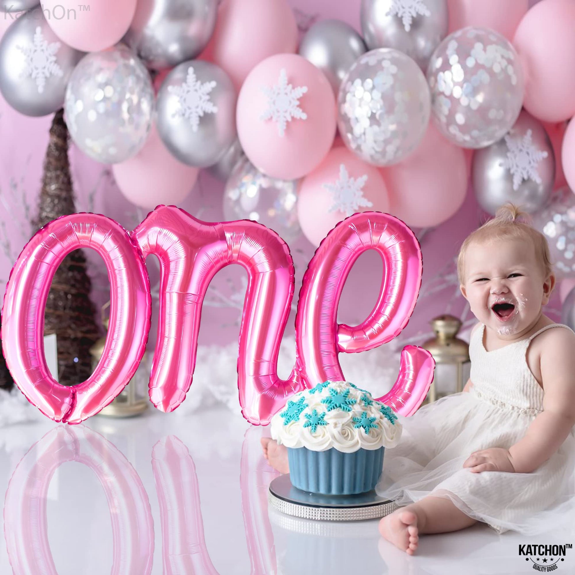 Katchon, Pink One Balloon For First Birthday - 20 Inch | Hot Pink 1 Balloon For First Birthday Decorations | Script One Balloons For 1St Birthday Decorations Girl | One Year Old Birthday Decorations