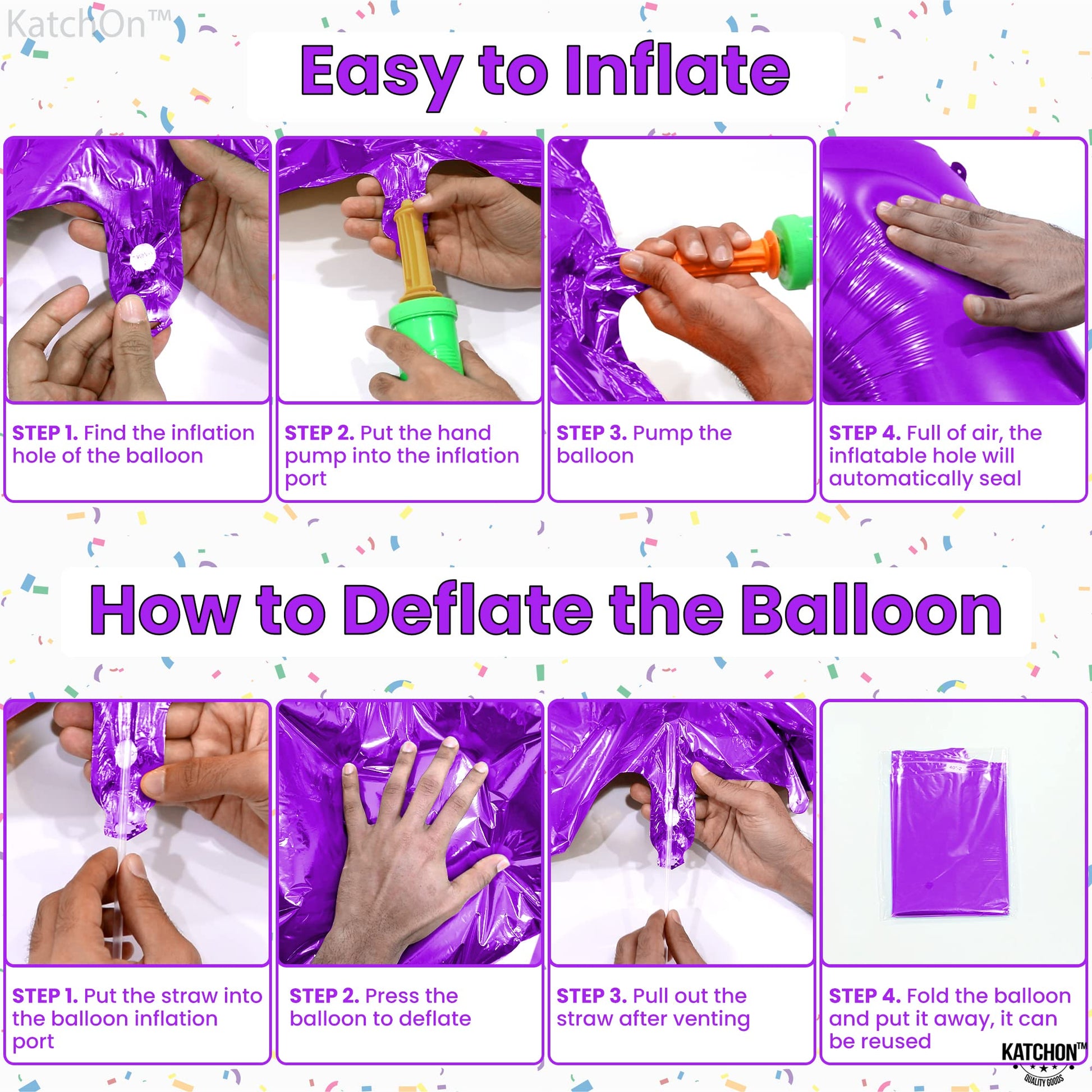 - Q: How do I inflate the Purple 22 Balloon? A: You can inflate the Purple 22 Balloon easily with helium or air using the included straw, making setup quick and convenient.