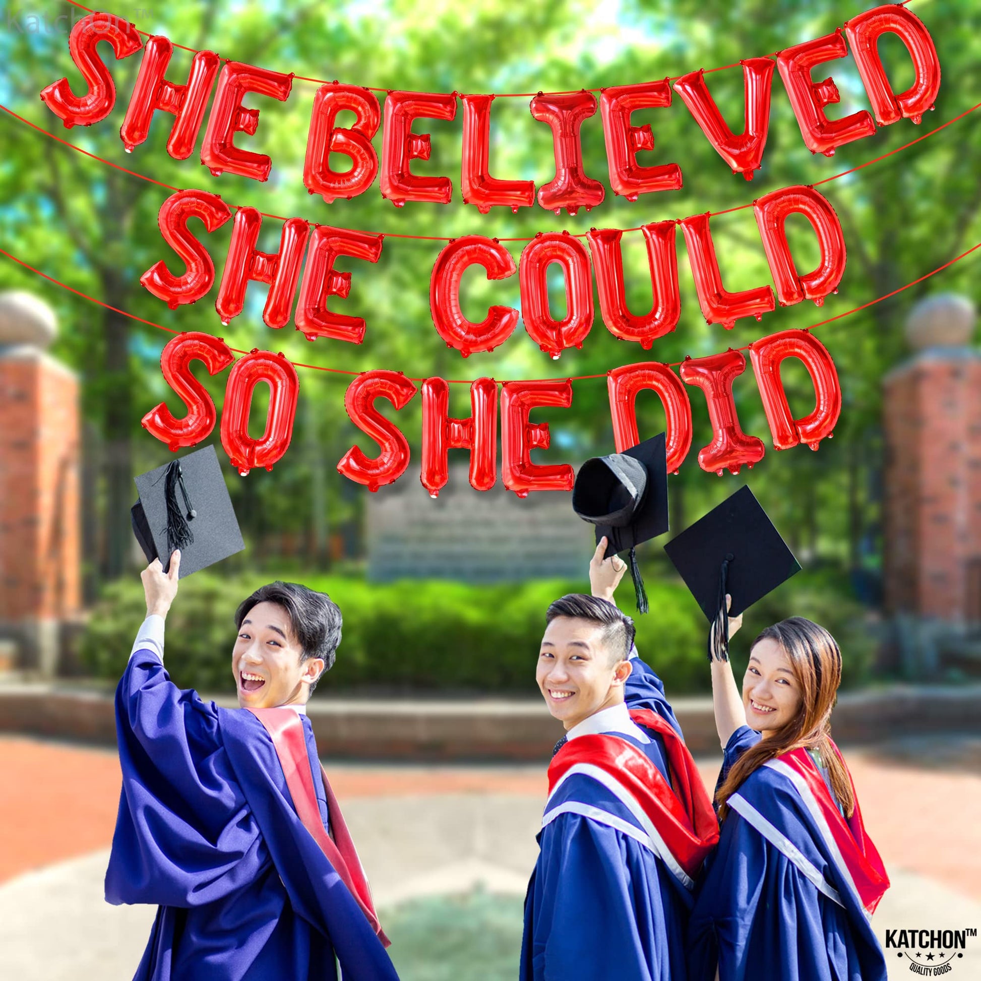 Katchon, Red She Believed She Could So She Did Balloons - 16 Inch | Congrats Balloons For Congratulations Decorations | Graduation Balloons Class Of 2025 For Graduation Decorations Class Of 2025