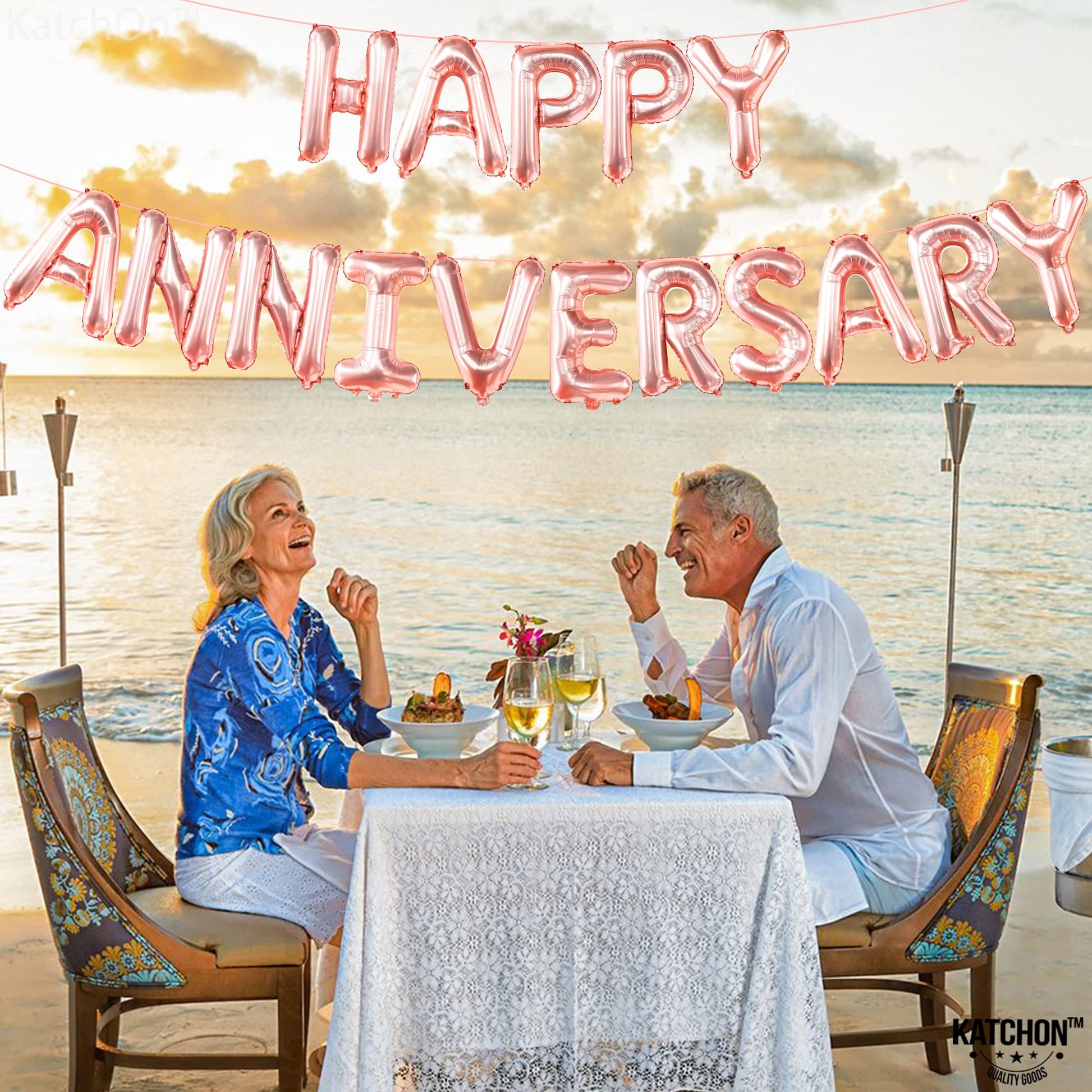 Katchon, Rose Gold Happy Anniversary Balloons Letters - 16 Inch | Happy Anniversary Banner For Happy Anniversary Decorations | Rose Gold Happy Anniversary Backdrop | Happy Anniversary Balloon Banner