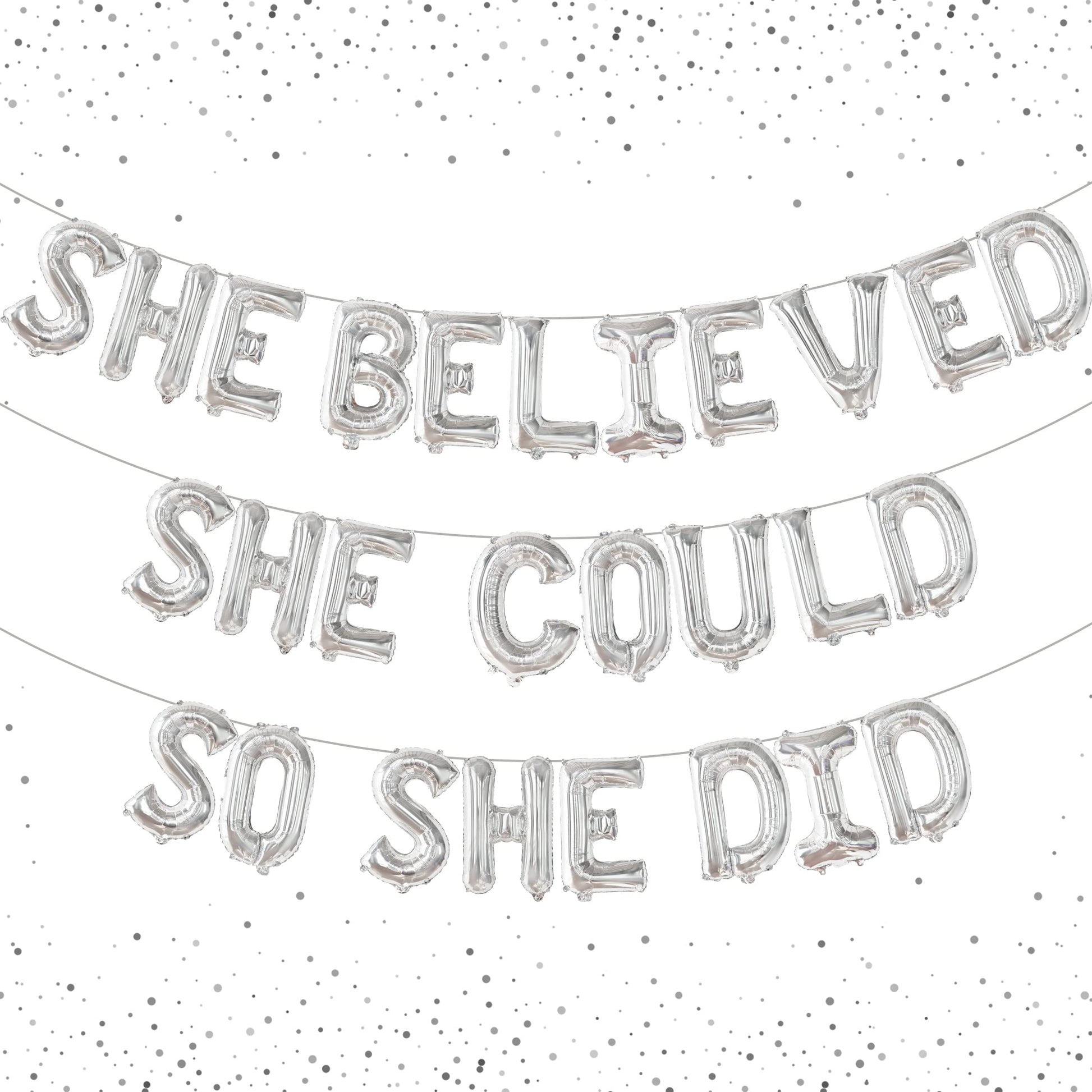 1) She Believed She Could So She Did Balloon Banner - silver, 16 Inch, Not Helium Supported