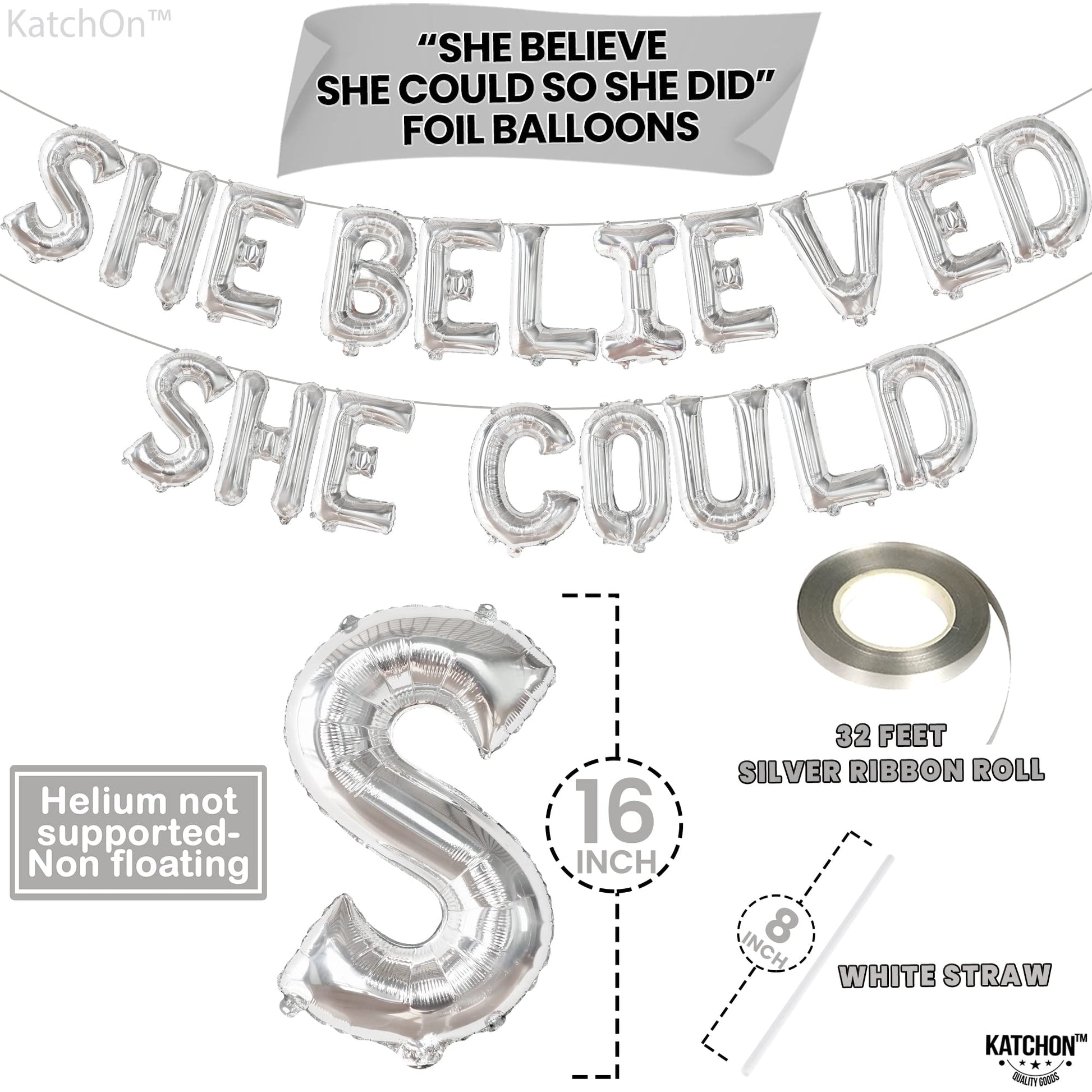 Katchon, Silver She Believed She Could So She Did Balloons - 16 Inch | Congrats Balloons For Congratulations Decorations | Graduation Balloons Class Of 2025 For Graduation Decorations Class Of 2025