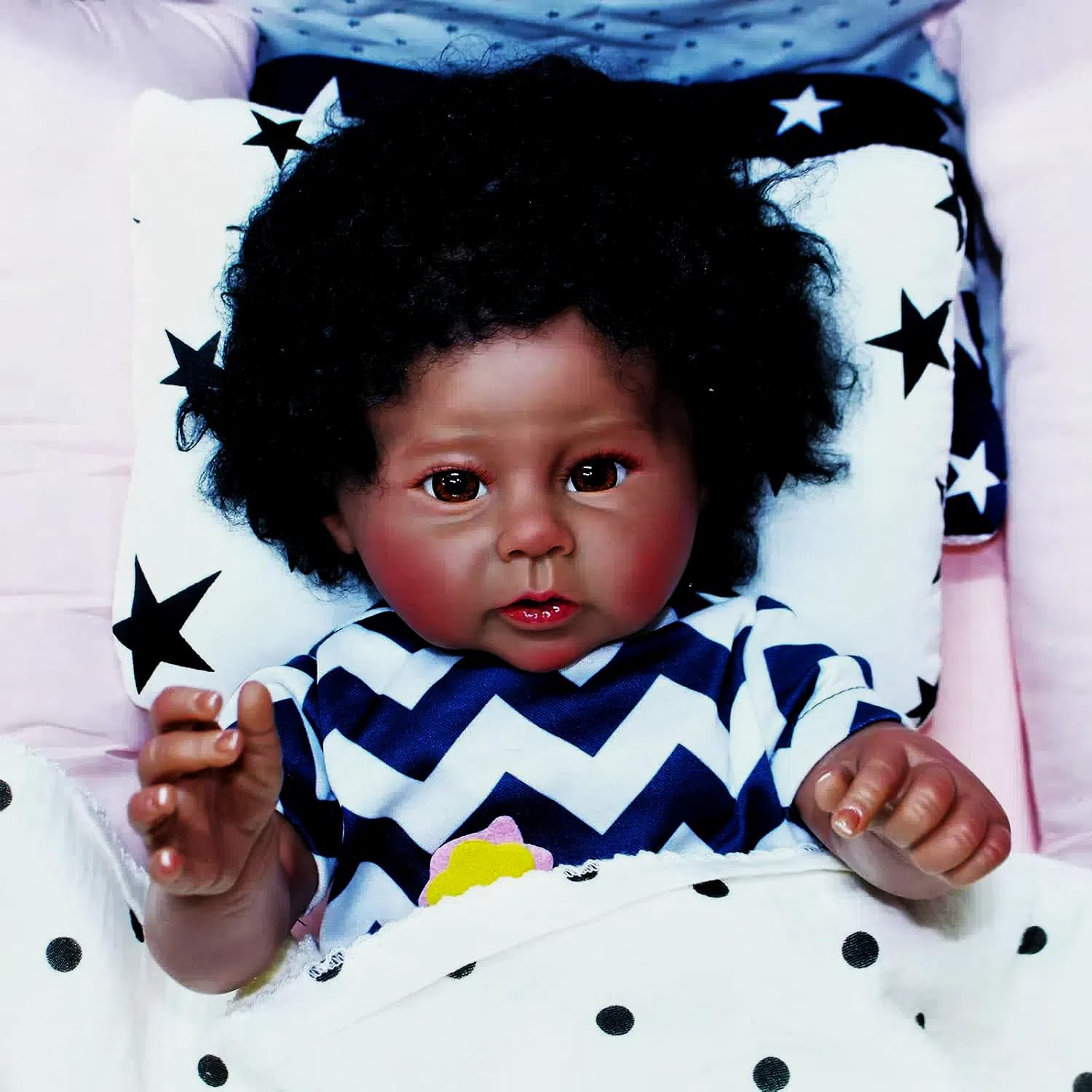 Katemily Reborn Baby Dolls - 18 Inch Soft Vinyl Newborn Baby Doll Brown Eyes Realistic Baby Boy Lifelike Baby Dolls With Feeding