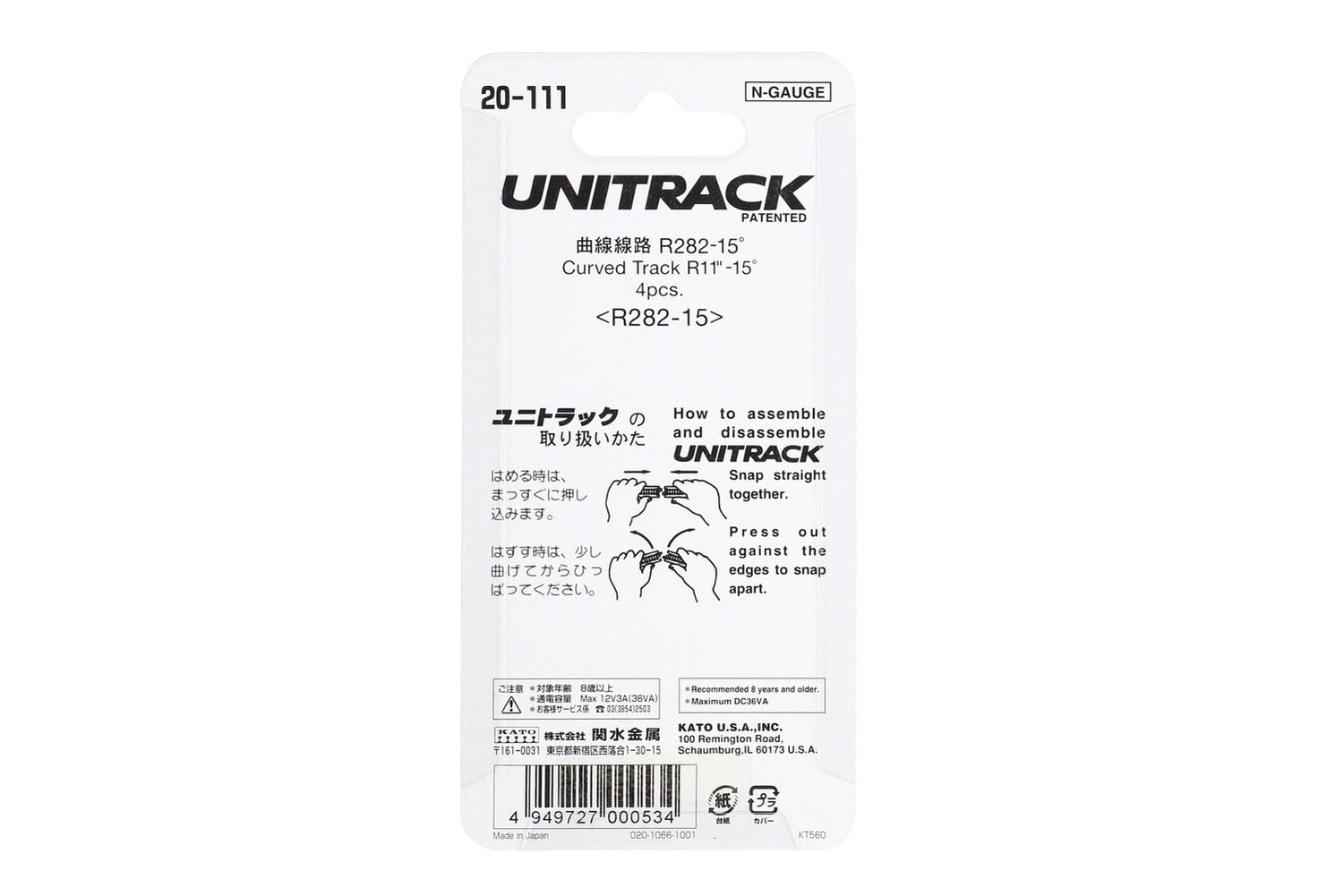 Kato USA Model Train Products Unitrack, 282mm (11'') Radius 15-Degree Curve Track (4-Piece)