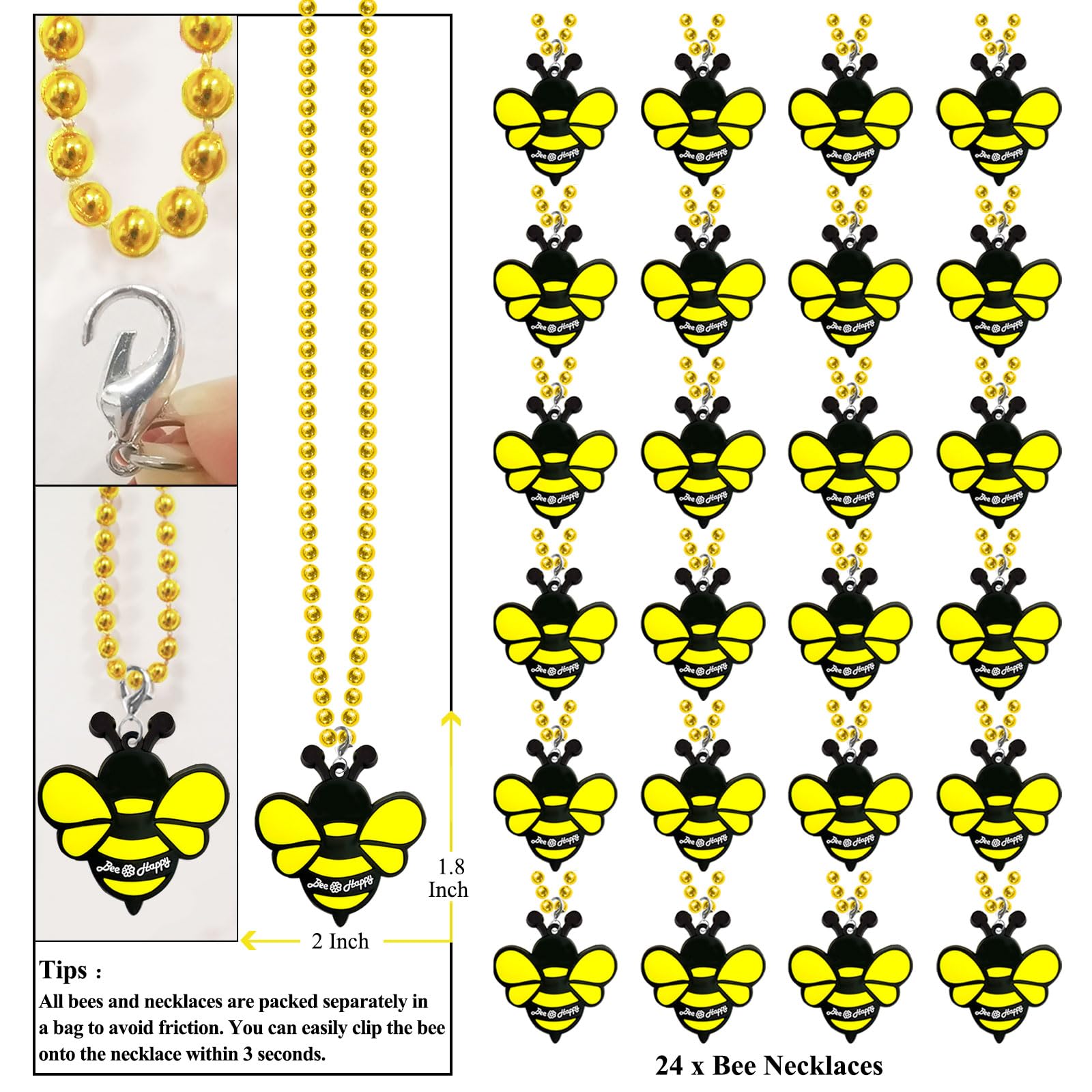 KeeStar 24 Pack Bee Necklace Party Favors for Mommy To Be, Bumble Bee, Honey Bee Party, Baby Shower, Animal Lover, Birthday, Sch