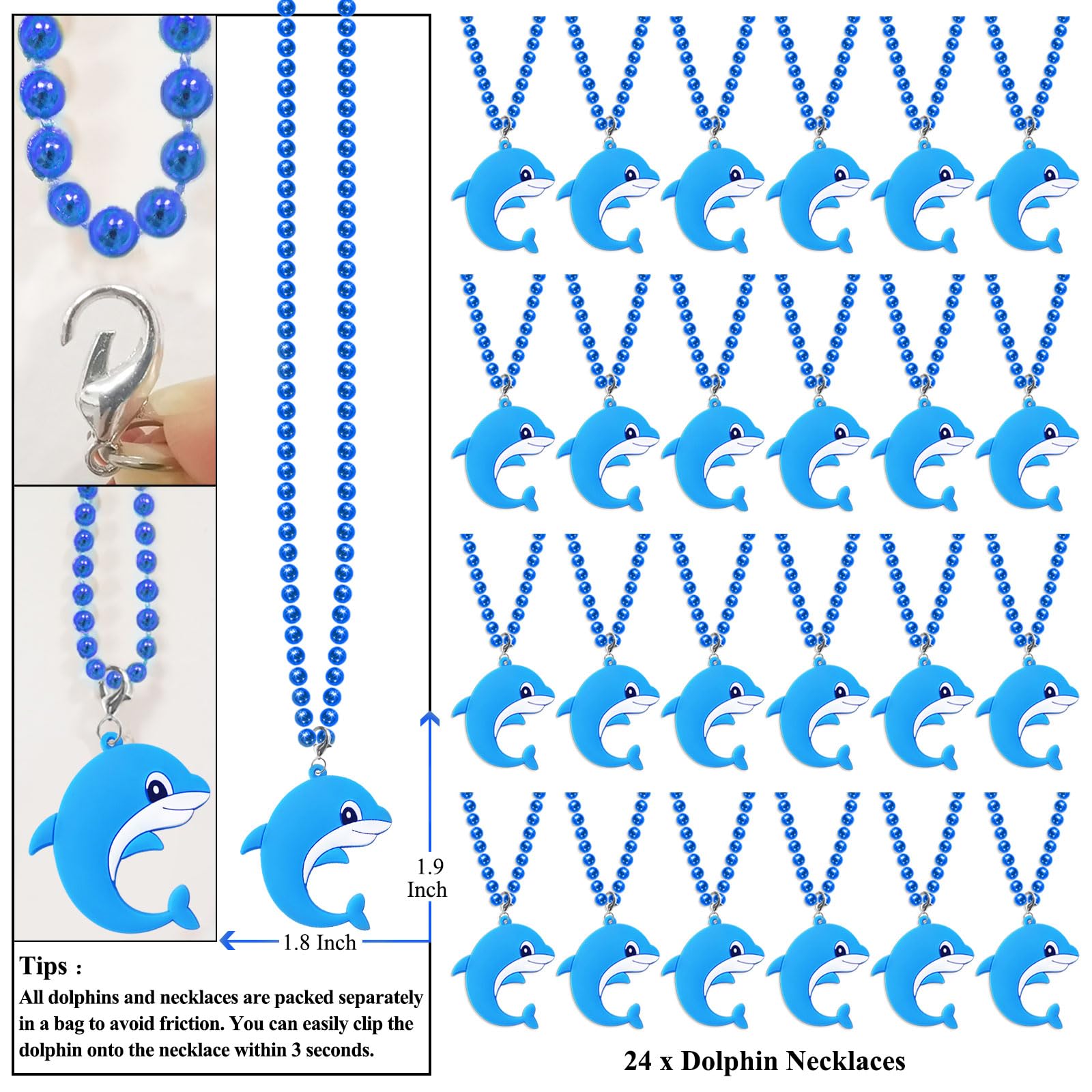 KeeStar 24 Pack Dolphin Necklace Party Favors for Sea World Themed Baby Shower, Birthday Party Goodie Bag Fillers,School Carniva
