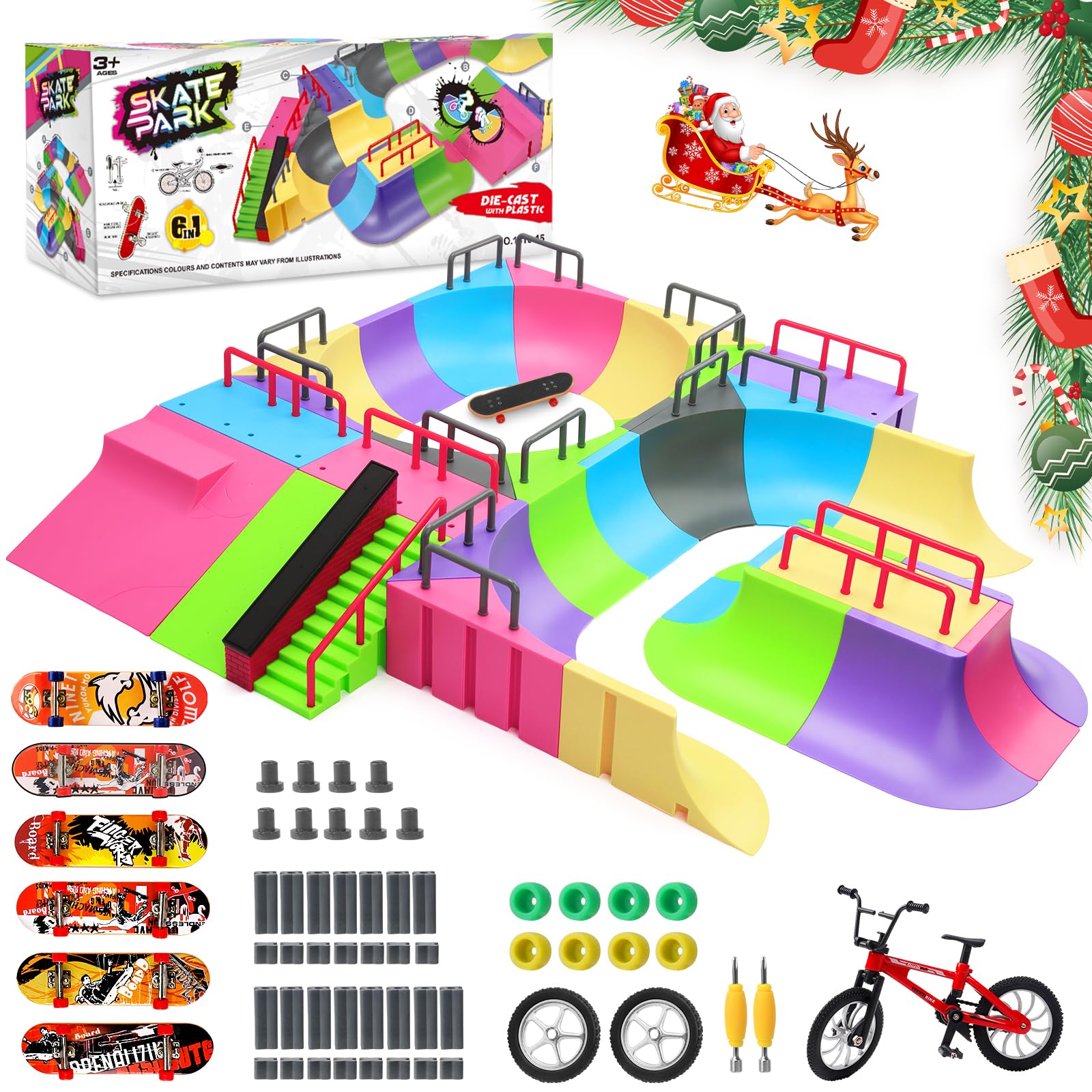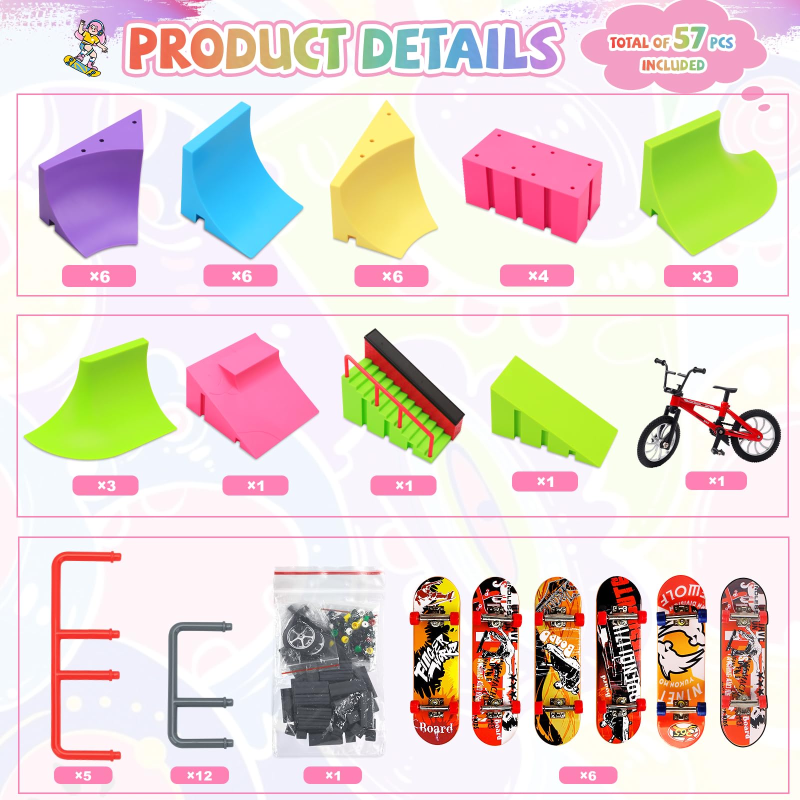 View compareKetiee Fingerboard Skate Park Kit: 57Pcs Finger Skateboard Ramp Set With Exclusive 31 Ramps 6 Mini Skateboards & Mini Bicycles, Huge Finger Skatepark Training Props Toys Gifts For Kids Ages 6 And Up