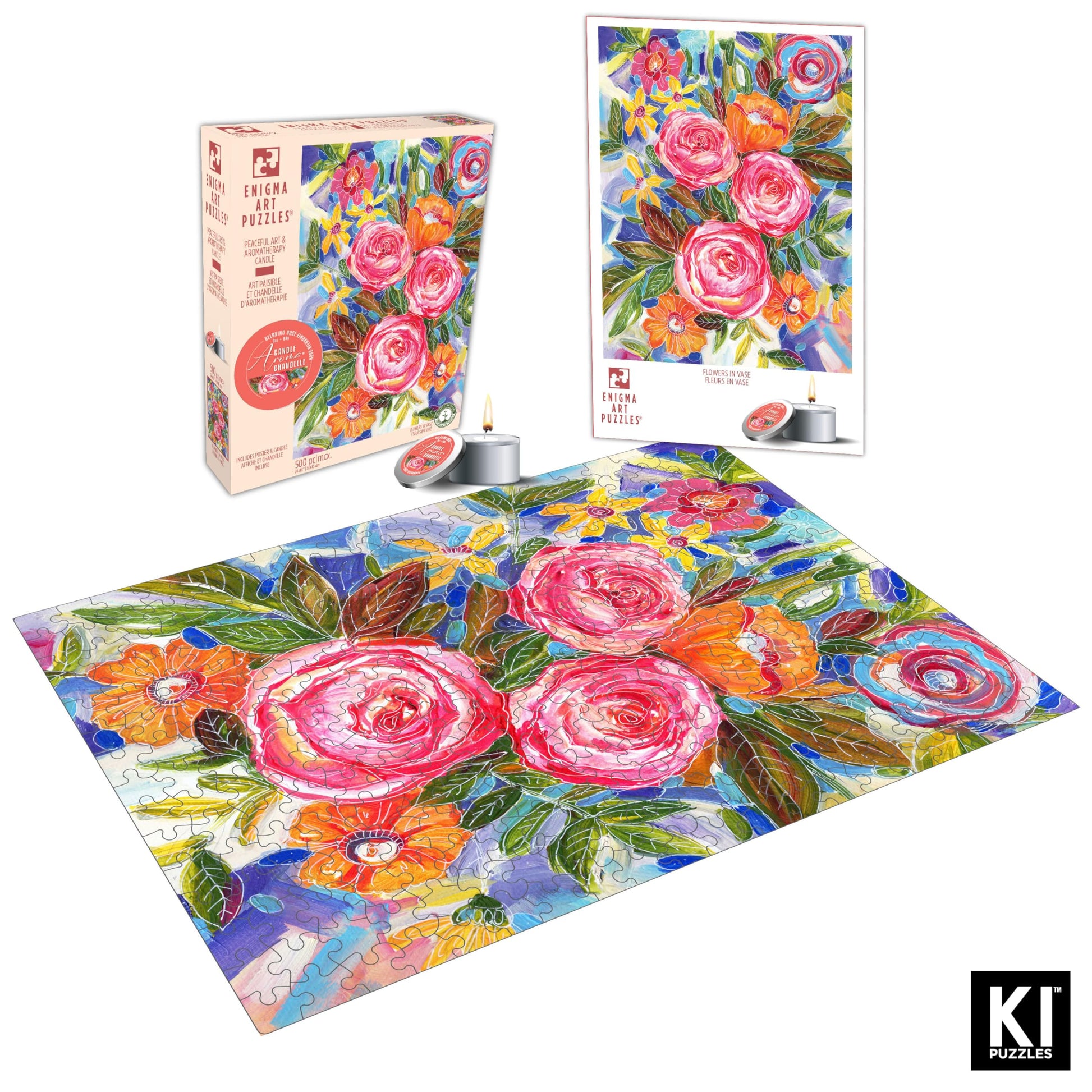 Ki Puzzles 500 Piece Puzzle For Adults Aromatherapy Flowers In Vase Jigsaw With Scented Candle From Playview Brands