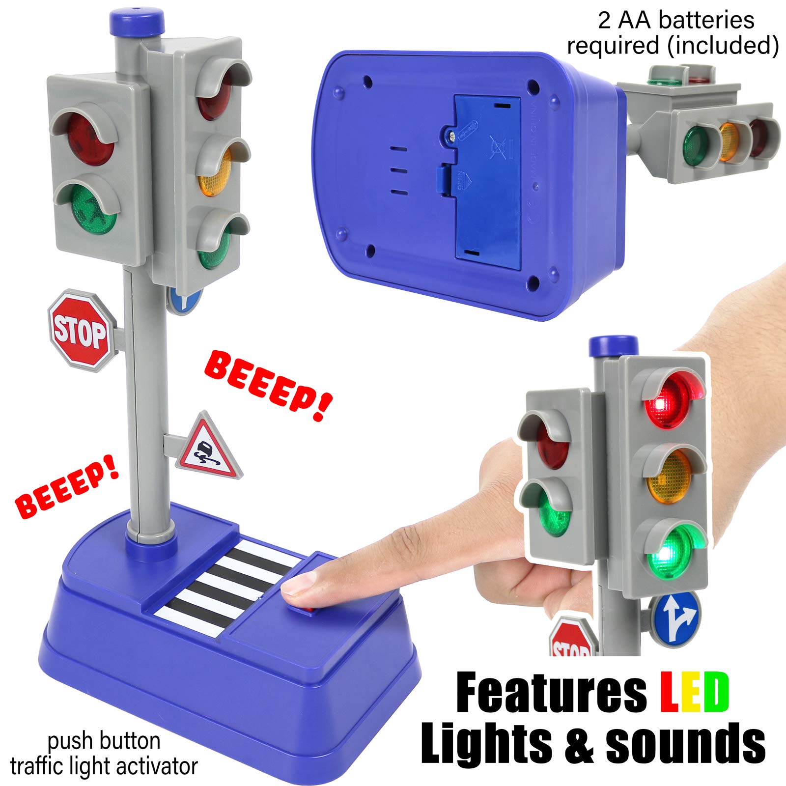 - Q: Does the traffic light signal require batteries? A: Yes, the traffic light signal requires 2 AA batteries, which are included with the set, ensuring that kids can start playing right away.