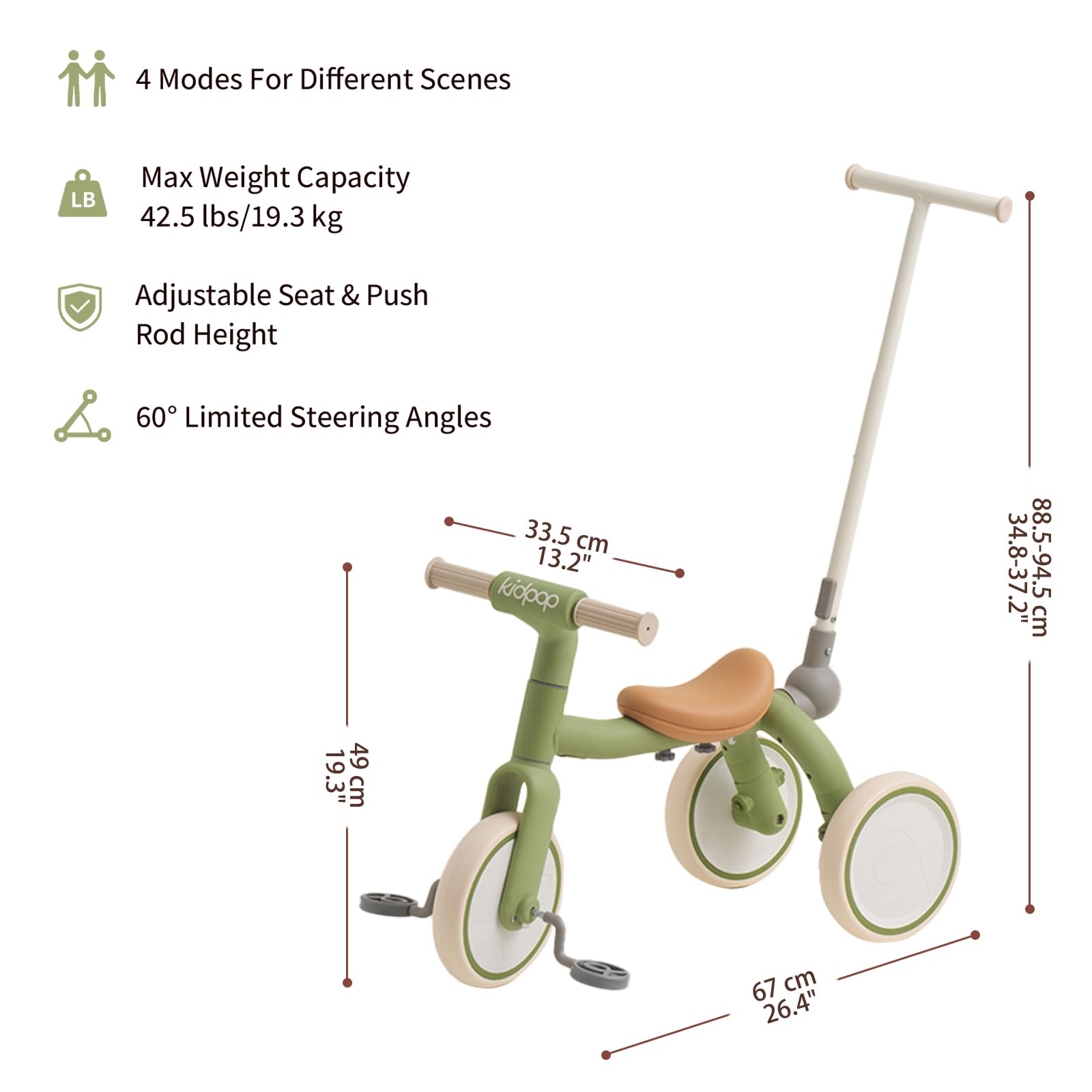 Kidpop Pony 4-in-1 Kids' Tricycles Pedal Vehicles for 1-4 Push Slide Ride On Toy Balance Bike Baby Walker Stroller (Green)