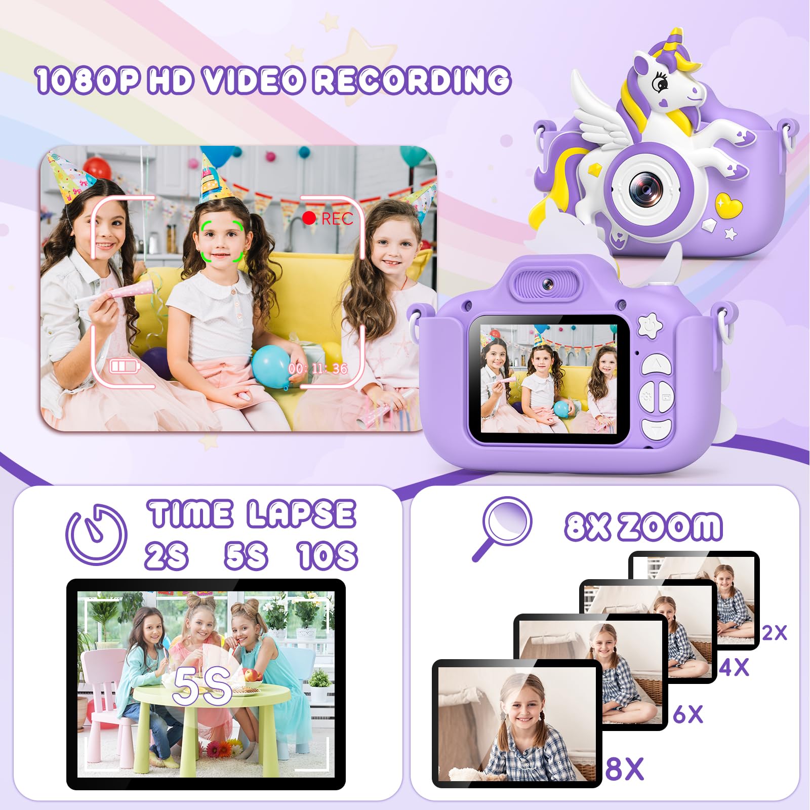 Kids Camera Toys Digital Camera For Kids, Christmas Birthday Gifts For Girls Age 3-12, Selfie 1080P Hd Video Digital Camera For 3 4 5 6 7 8 9 10 Year Old Girls With 32Gb Sd Card
