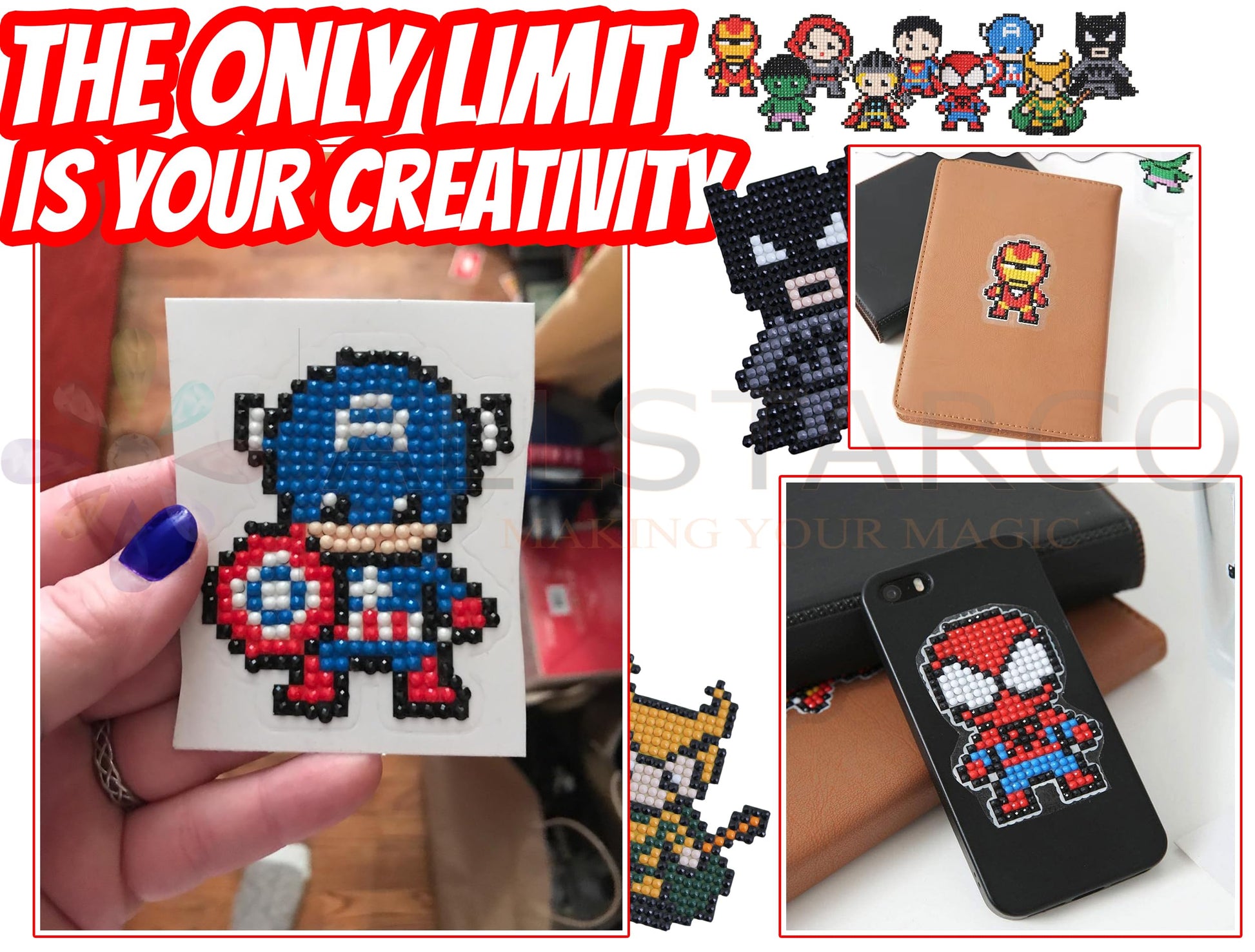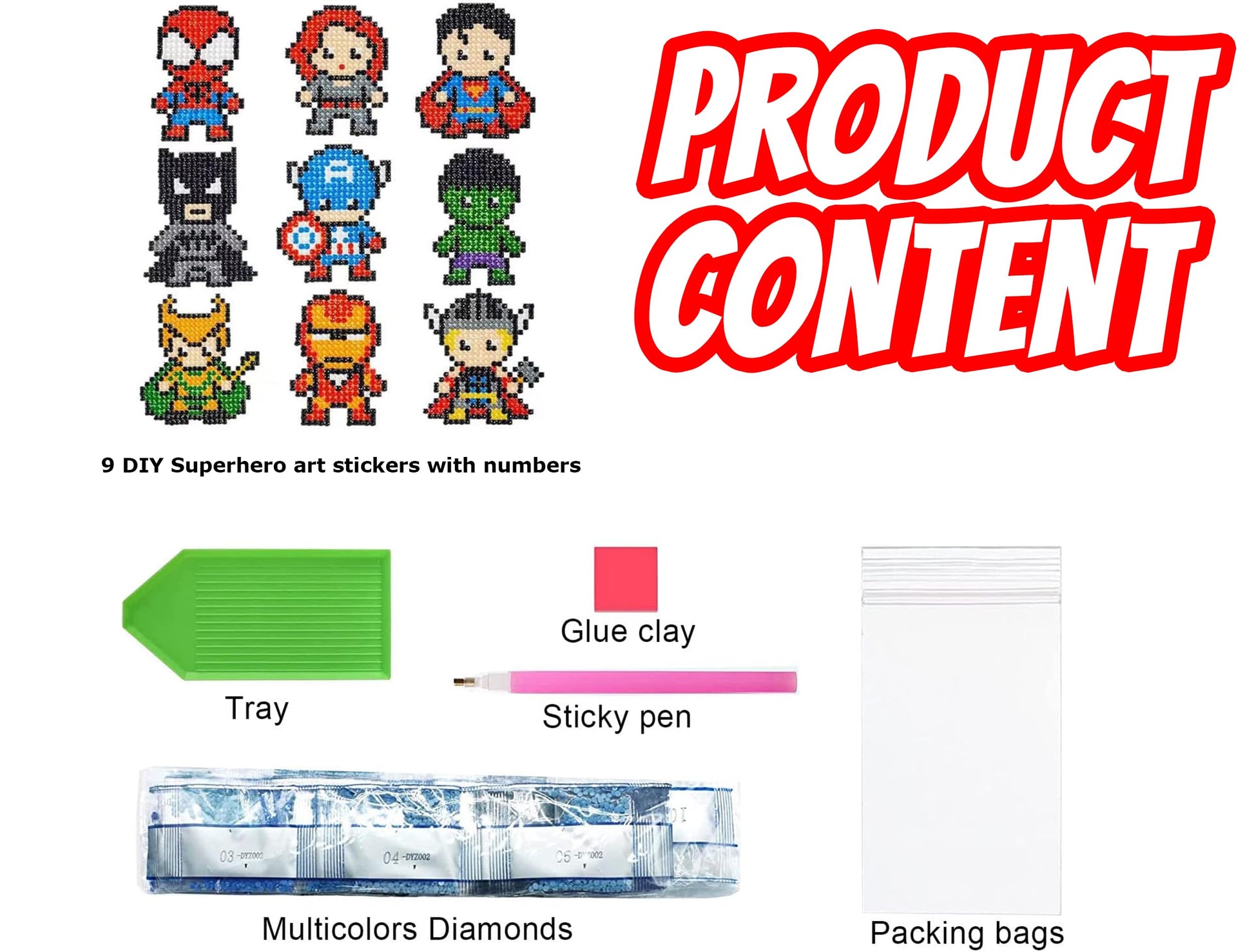 Kids Crafts Gem Art Hero Sticker Kit - Diamond Painting by Numbers with Rhinestones Fun & Easy - includes 9 Super Hero Stickers