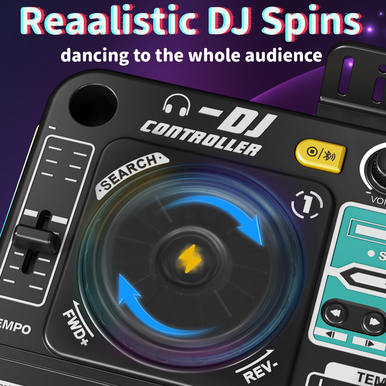 Kids DJ Mixer Board Controller Toy Set with Turntable Piano Keys Microphone & Bluetooth - Musical Instrument Toy for Toddlers Babies & 3-8 Year Old Boys & Girls - Birthday (Black)