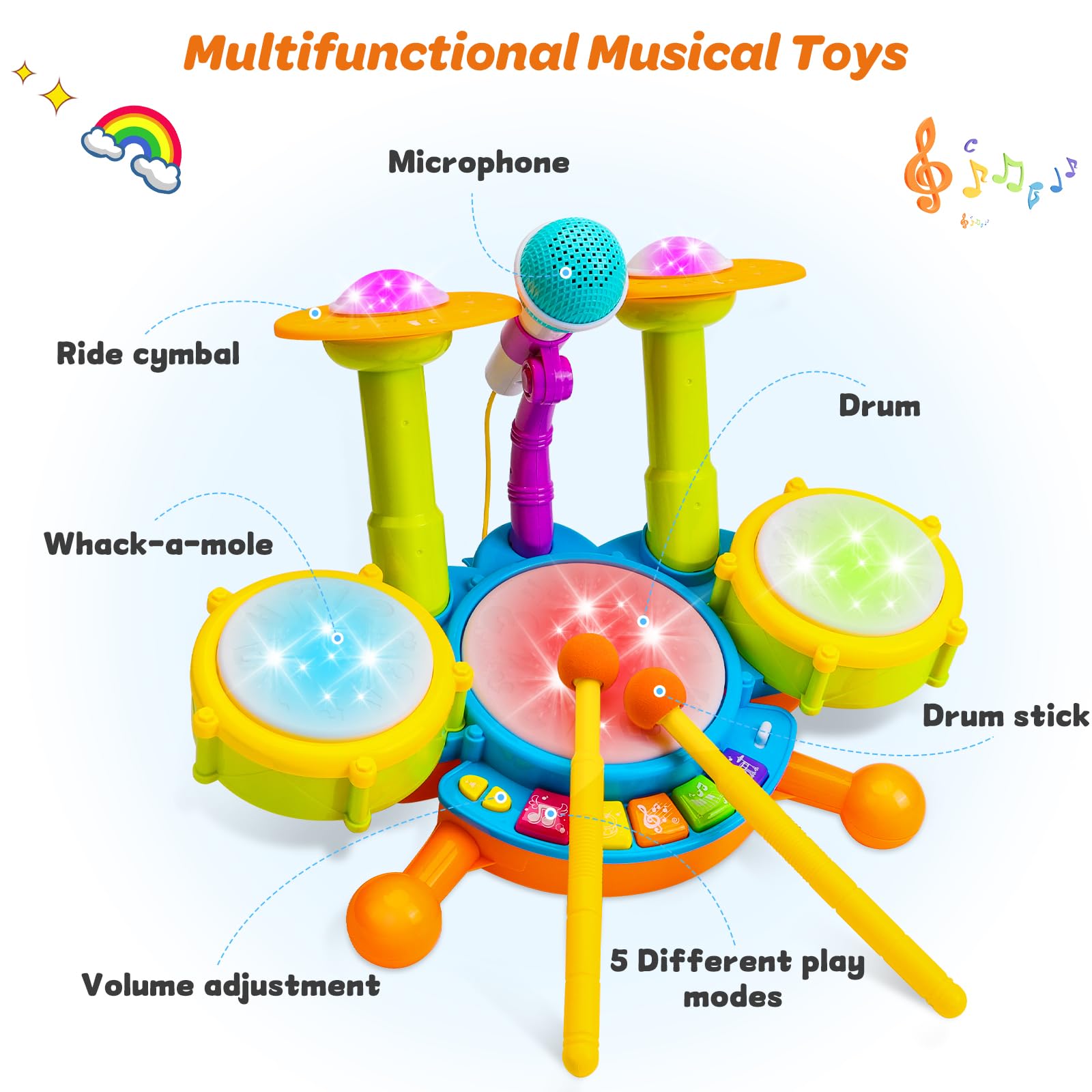 View compareKids Drum Set For Toddlers 1-3 Musical Baby Toys For 1 Year Old Boy Gifts Montessori Baby Girl Toys With Microphone Light Up Learning Toys Birthday Gifts For Infants 6 9 12 18 Months Toddler Age 1-2
