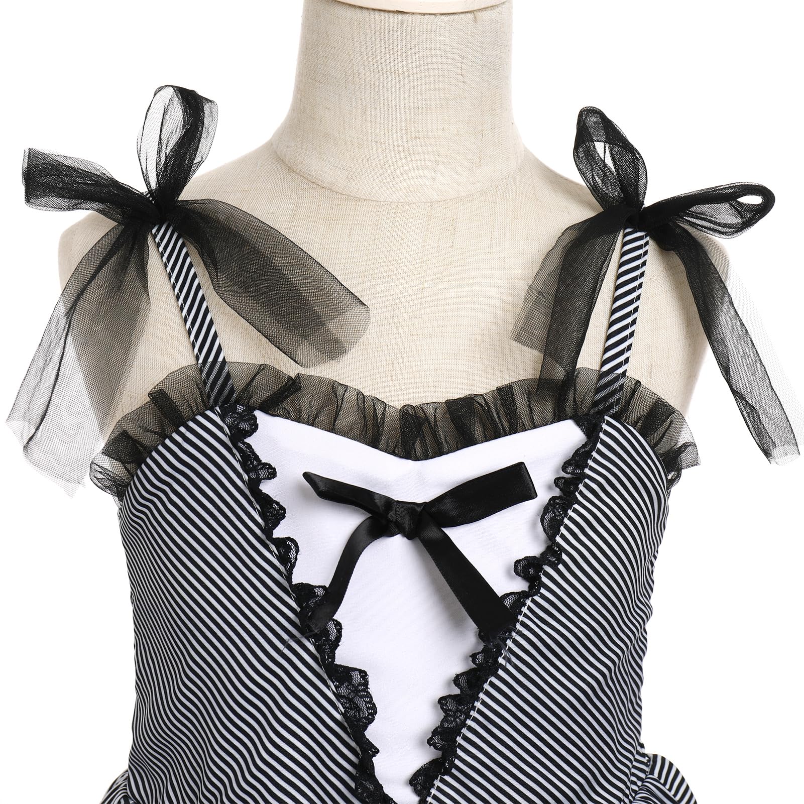 View compareKids Girls Halloween Costume Black and White Green Striped Stripes Block Ruffle Lace Tulle Dress Up Outfit Toddler Cosplay Fancy