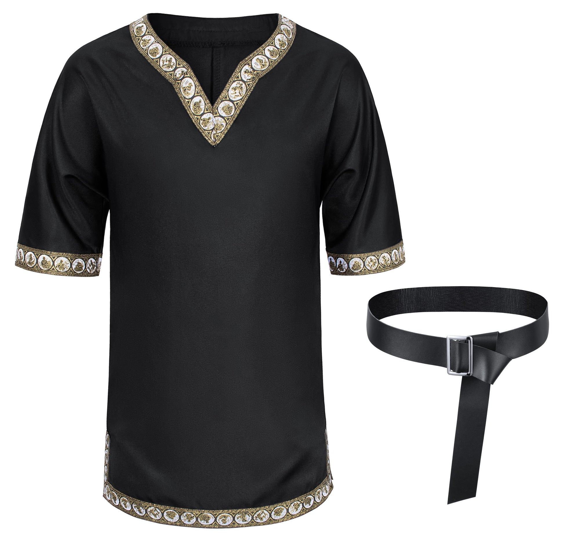 ?Package includes?:Tunic,Belt; | ?Material?: Made of high quality yarns, fabric, soft and comfortably fabric. | ?Features?:Medieval Tunic,V neck,Embroidered trim,Short sleeve,loose and breathable. | ?Size?:Suitable for most kids.Detailed size, refer to the Size Chart.Please choose the bigger size if you are overweight. | ?Application?:Suit for Medieval theme parties,Viking Role Play,LARP,Birthday,Halloween , Christmas cospaly, Carnival,Dress up, Easter,role-playing,school show, dance recital party,stage,school show, photo prop, events, and everyday fun.
