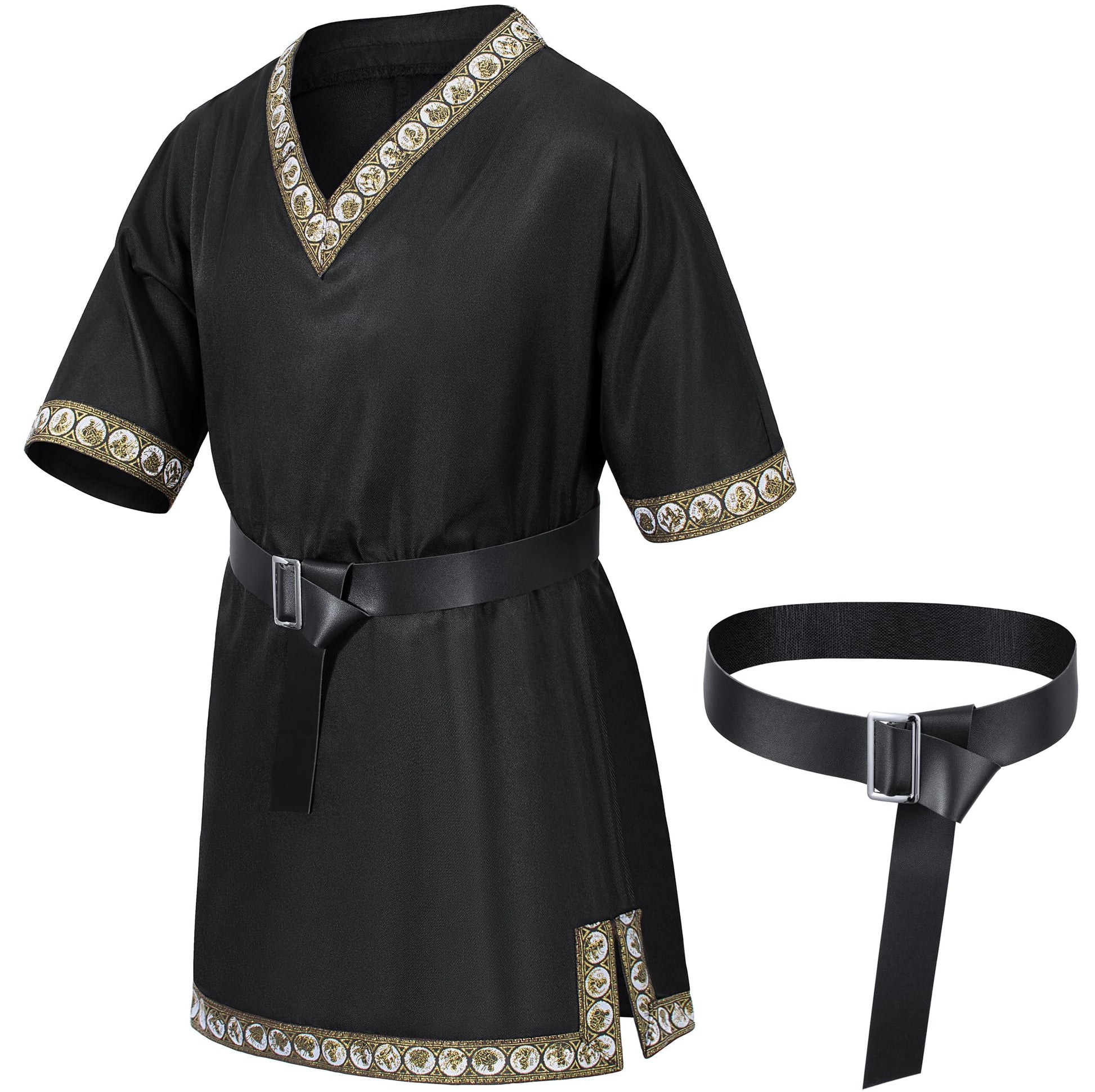?Package Includes?:Tunic,Belt; | ?Material?: Made Of High Quality Yarns, Fabric, Soft And Comfortably Fabric. | ?Features?:Medieval Tunic,V Neck,Embroidered Trim,Short Sleeve,Loose And Breathable. | ?Size?:Suitable For Most Kids.Detailed Size, Refer To The Picture.Please Choose The Bigger Size If You Are Overweight. | ?Application?:Suit For Medieval Theme Parties,Viking Role Play,Larp,Birthday,Halloween , Christmas Cospaly, Carnival,Dress Up, Easter,Role-Playing,School Show, Dance Recital Party,Stage,School Show, Photo Prop, Events, And Everyday Fun.