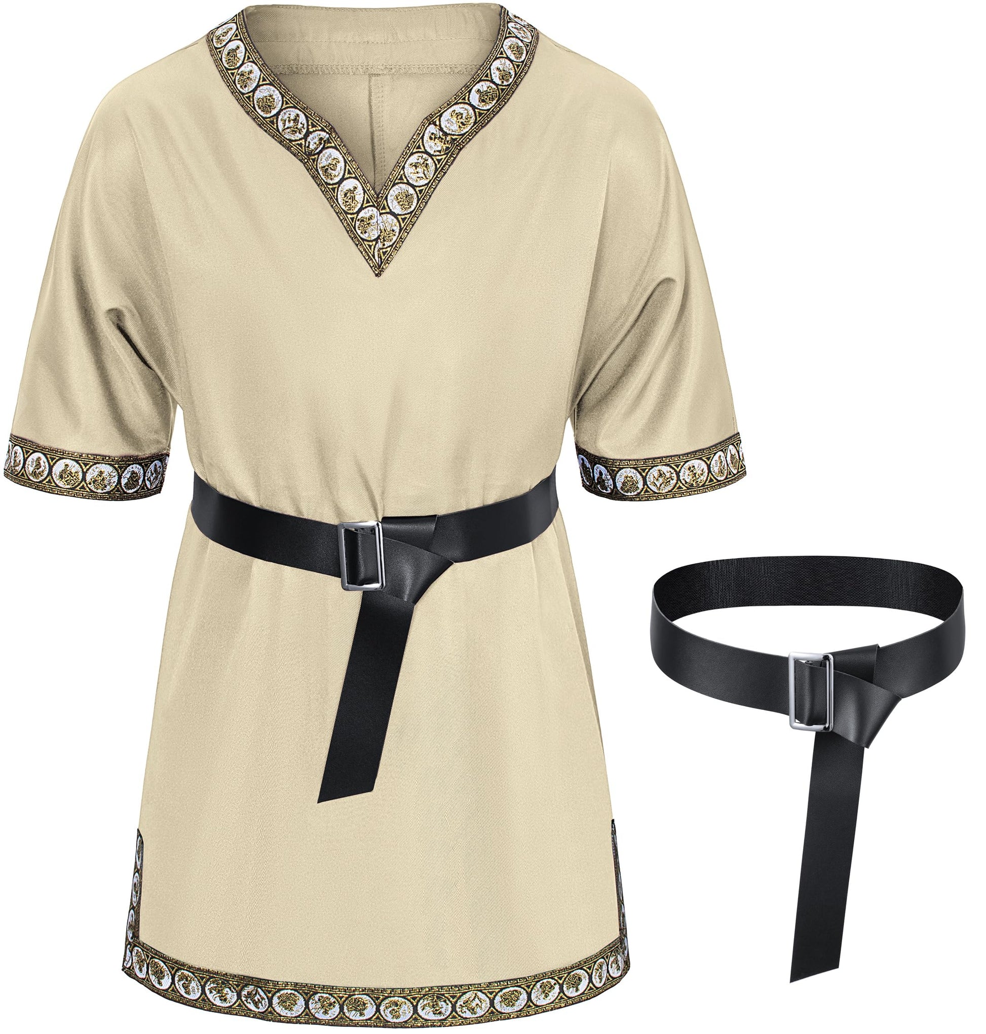 ?Package Includes?:Tunic,Belt; | ?Material?: Made Of High Quality Yarns, Fabric, Soft And Comfortably Fabric. | ?Features?:Medieval Tunic,V Neck,Embroidered Trim,Short Sleeve,Loose And Breathable. | ?Size?:Suitable For Most Kids.Detailed Size, Refer To The Picture.Please Choose The Bigger Size If You Are Overweight. | ?Application?:Suit For Medieval Theme Parties,Viking Role Play,Larp,Birthday,Halloween , Christmas Cospaly, Carnival,Dress Up, Easter,Role-Playing,School Show, Dance Recital Party,Stage,School Show, Photo Prop, Events, And Everyday Fun.