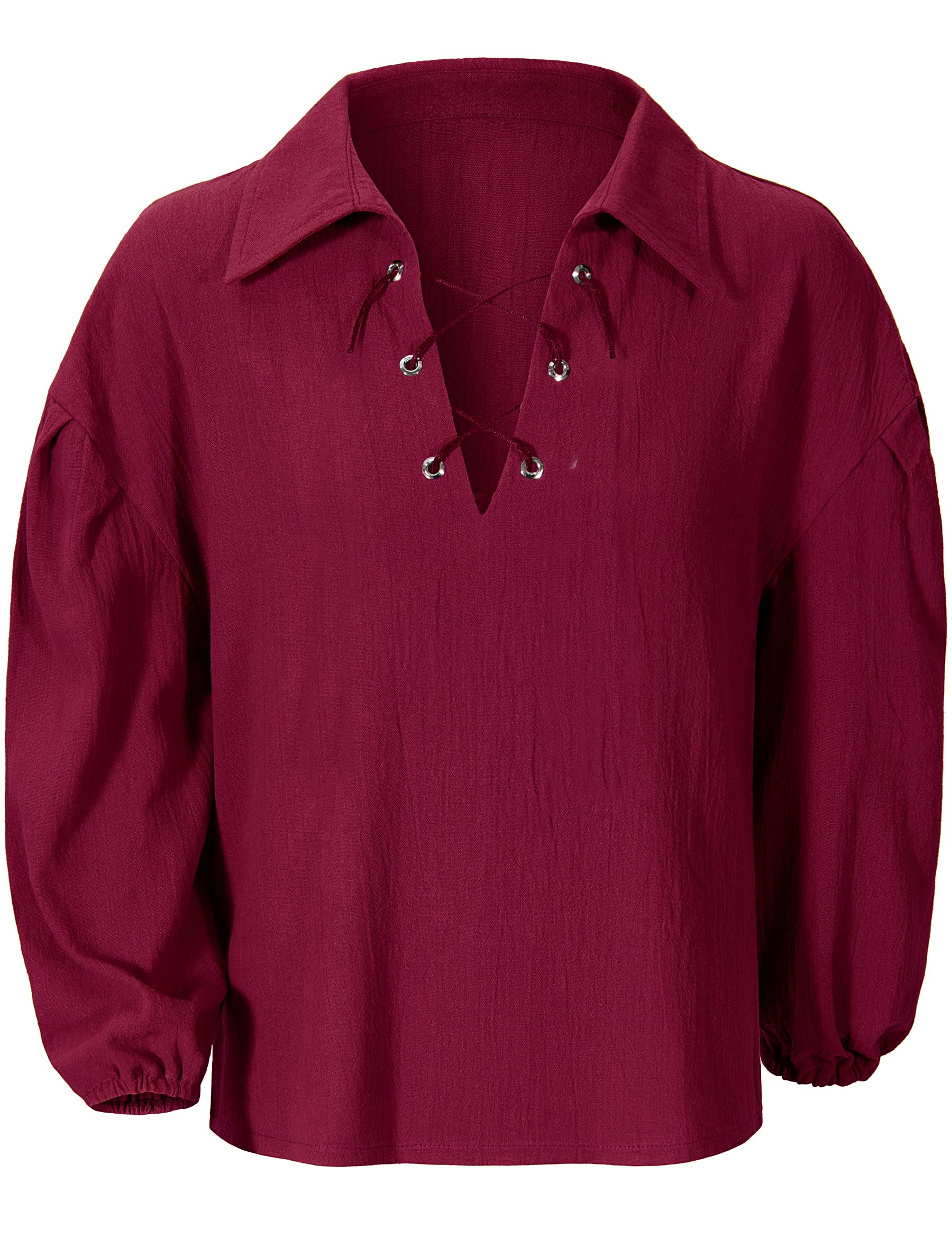 Features: Boy's Halloween costume shirt, vintage role-playing shirt, long sleeves, lace up neckline, loose fit, elastic wide cuffs, dropped shoulders, unique historical era style. | Material:This vintage shirt is made of high-quality cotton material, providing a soft, comfortable, and breathable wearing experience. | Size:3-4T; 4-6T; 6-8 Years; 8-10 Years; 10-12 Years;Please refer to the Size Chart for detailed dimensional data. | Design:When worn, it has a puffy appearance, and the sleeves feature a cuffed design, giving it a very vintage feel. | Occasions: Perfect for Viking shirt, Medieval themed parties, Renaissance role play, Pirate cosplay,pioneer dress up,Stage performance,Halloween, Christmas, Carnival,celebrations, festive Party,birthday party games, and so on.