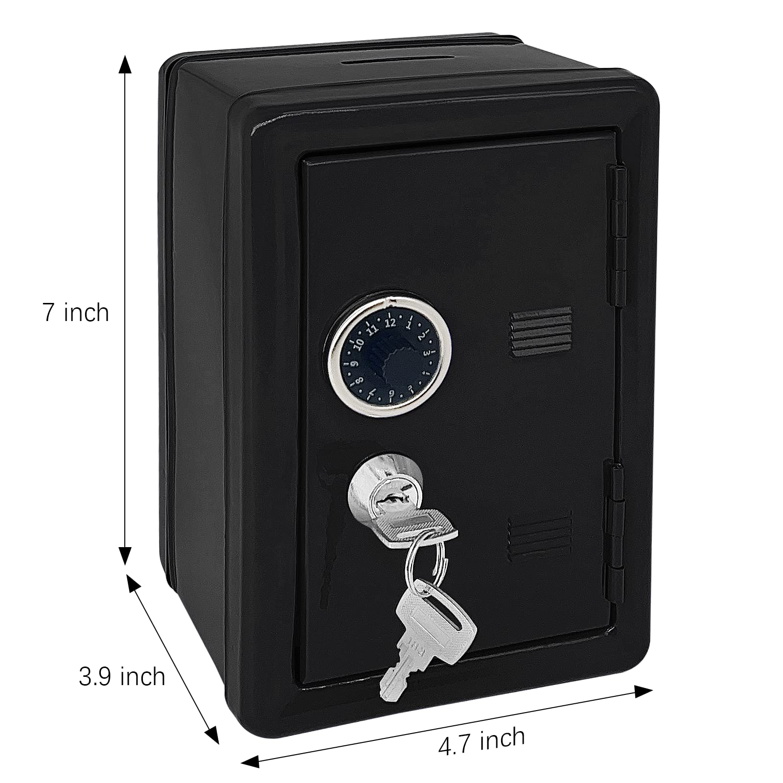 Kids' Safe Piggy Bank, Metal Safe with Key, Money Saving Box for Children, Boys Girls Best Giftoney Banks (Black, One Size)