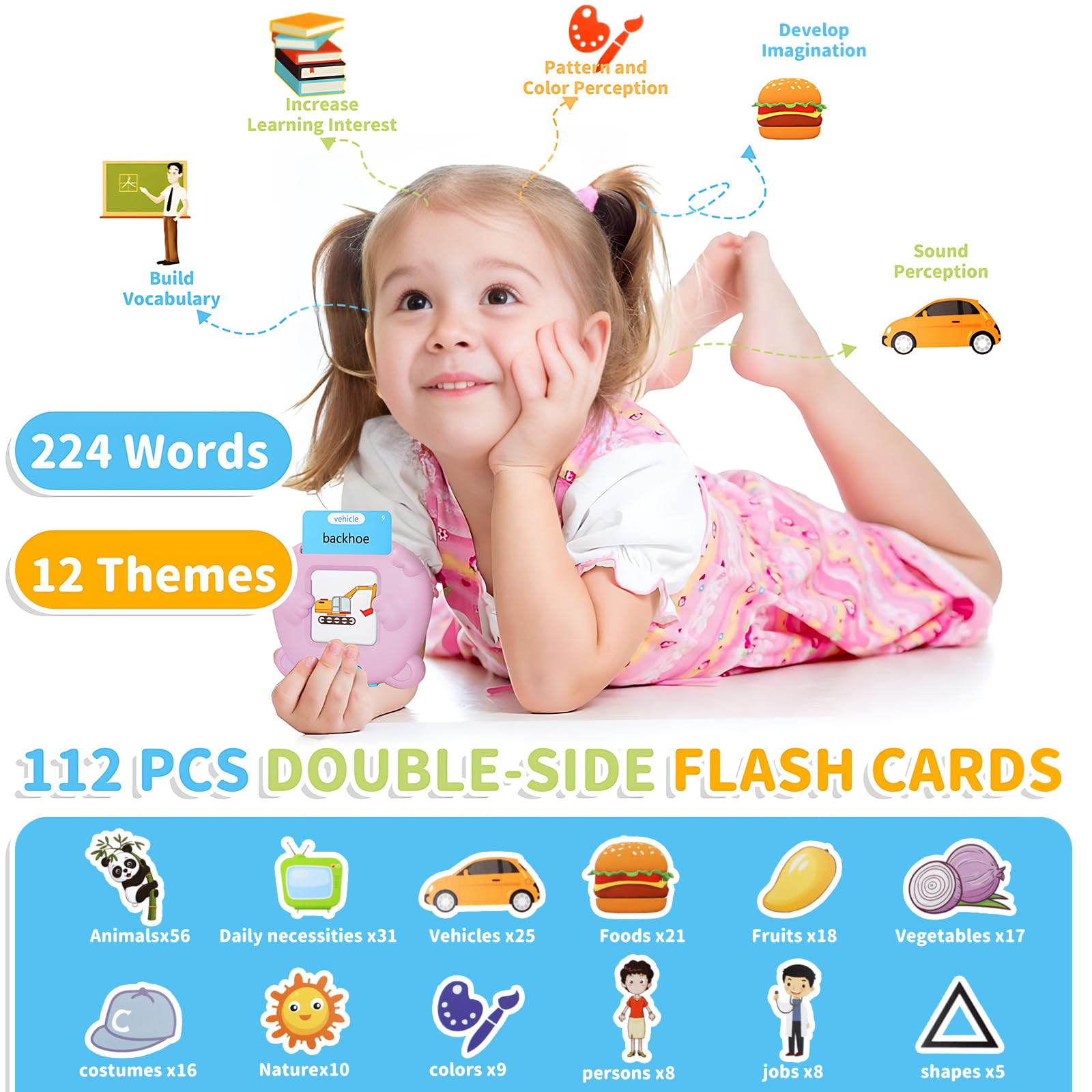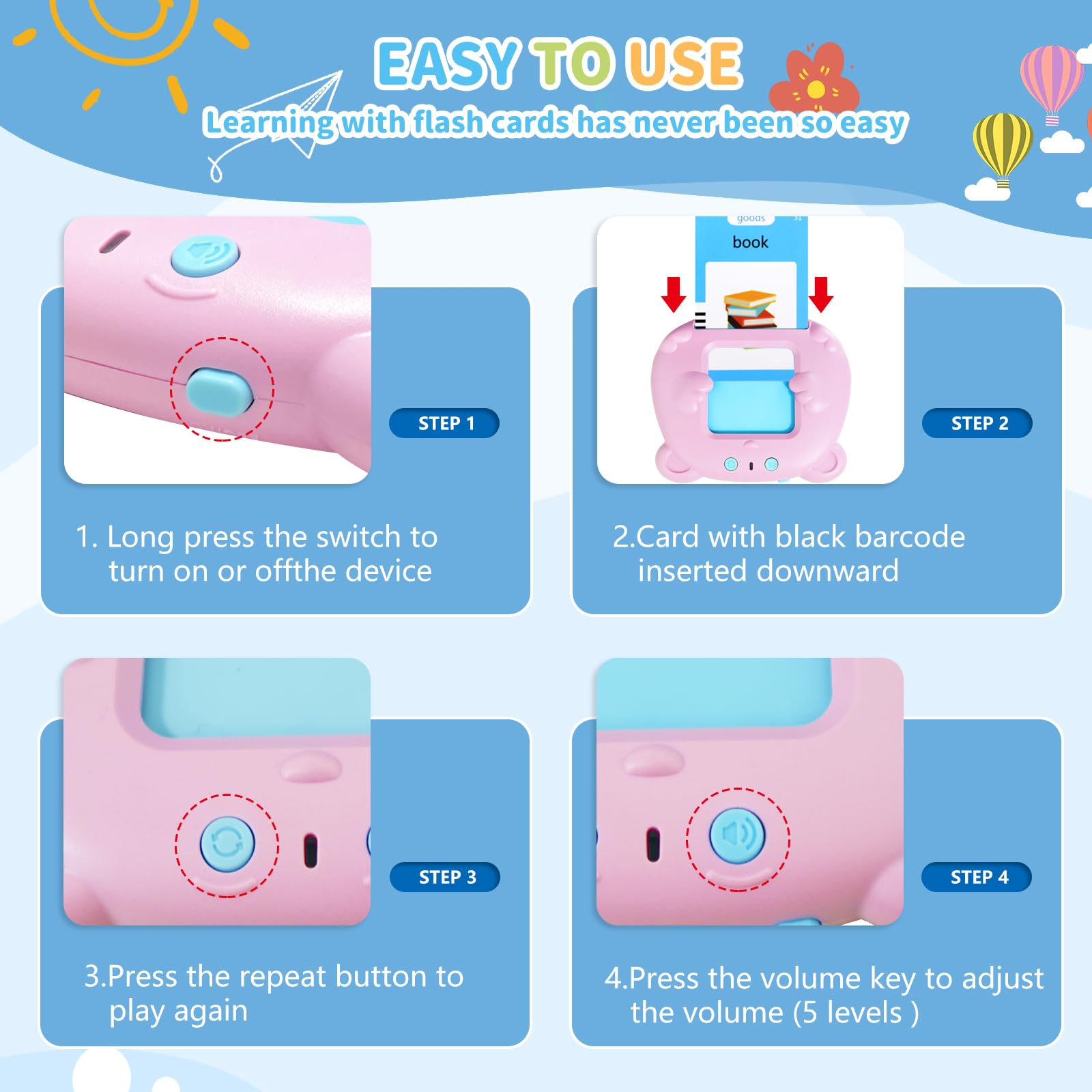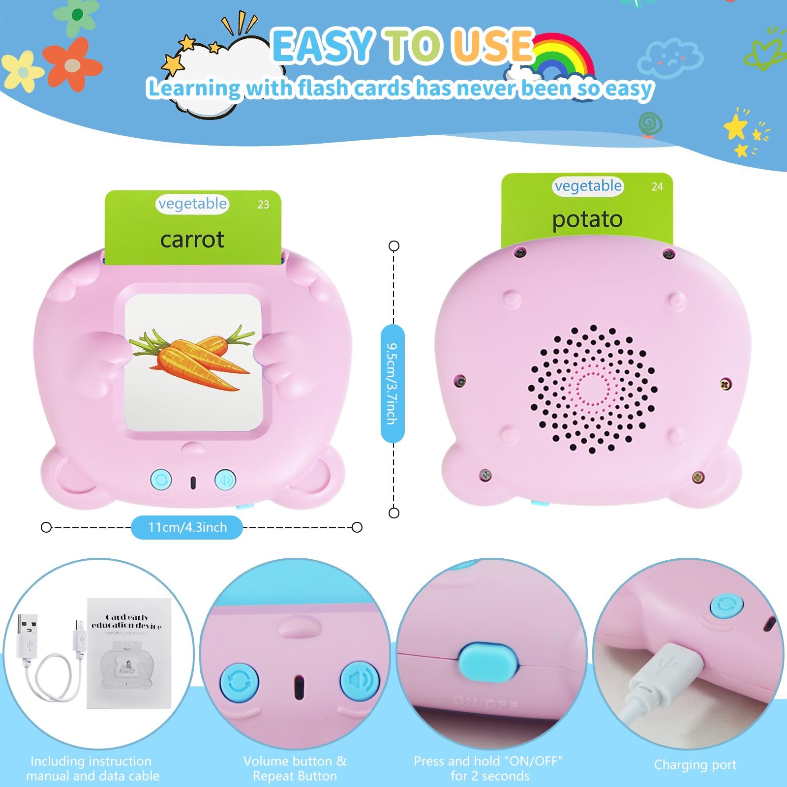 Kids Toddler Talking Flash Cards With 224 Sight Words,Montessori Toys,Speech Therapy,Autism Sensory Toys,Learning Educational Gifts For Age 2 3 4 5 Years Old Boys And Girls (Pink)