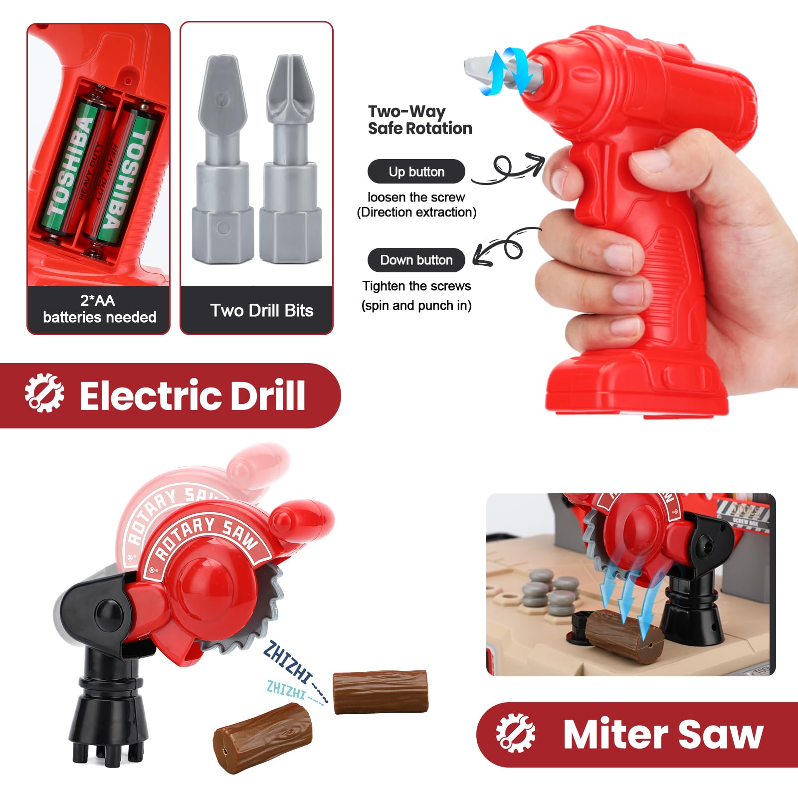 Kids Tool Bench, Toddler Workbench with Electric Drill and Realistic Toy Tools, Toy Tool Bench Workshop, Pretend Play Kids Tool