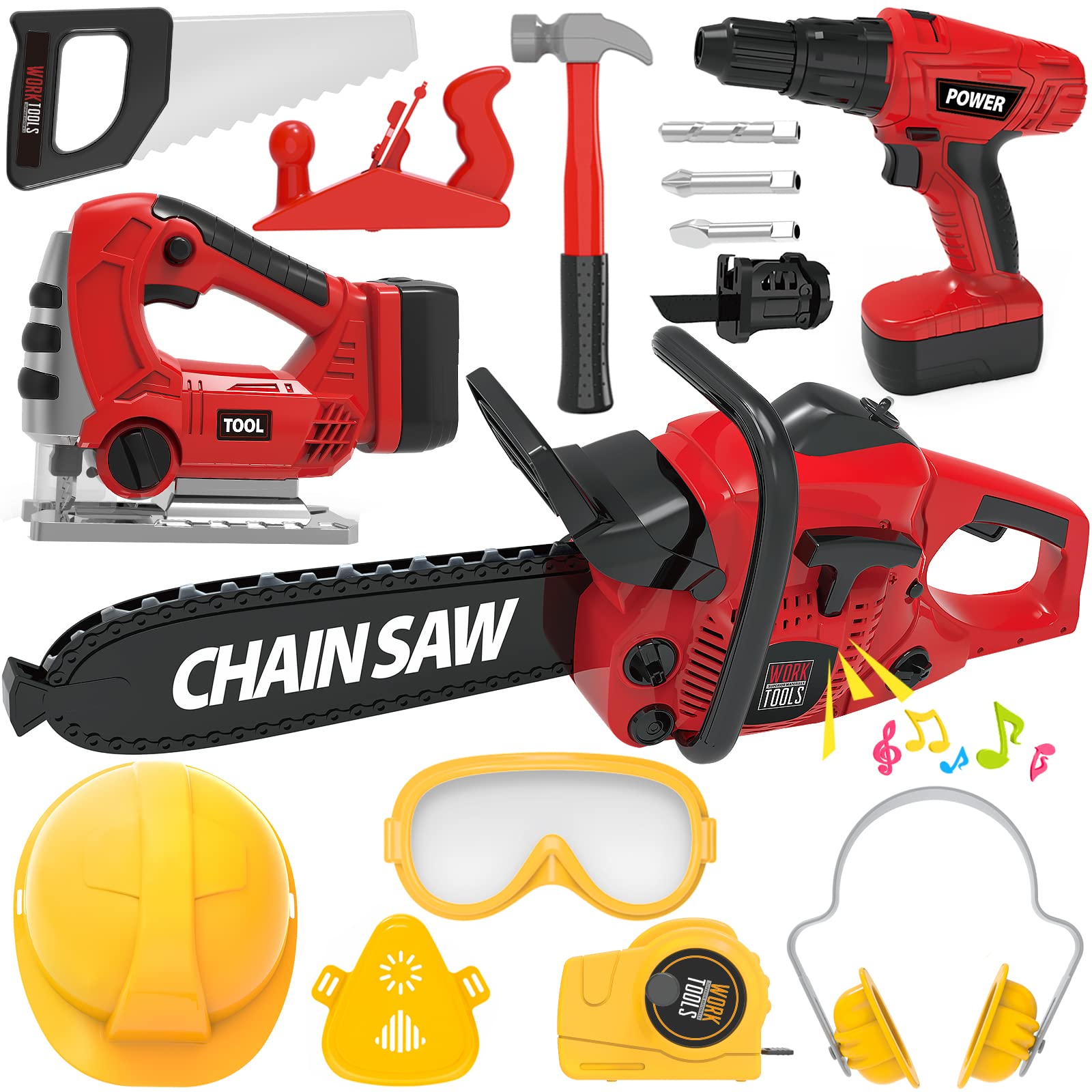 Kids Tool Set with Electric Toy Drill Chainsaw Jigsaw Toy Tools, Realistic Kids Power Construction Pretend Play Tools Set Toy ST