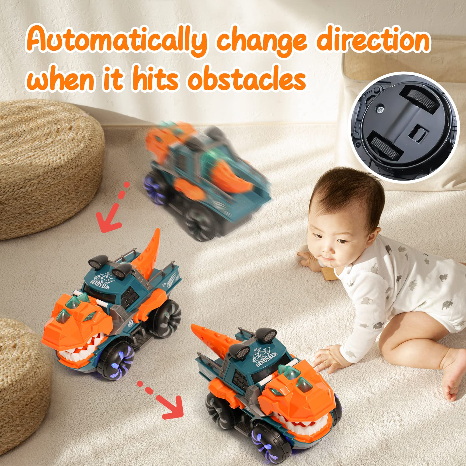 KidsMind Dinosaur Monster Truck for Baby Boy Music and Light Up Toy for Toddlers 1-3,Battery Powered Dino Trucks Toy Ideas for 2