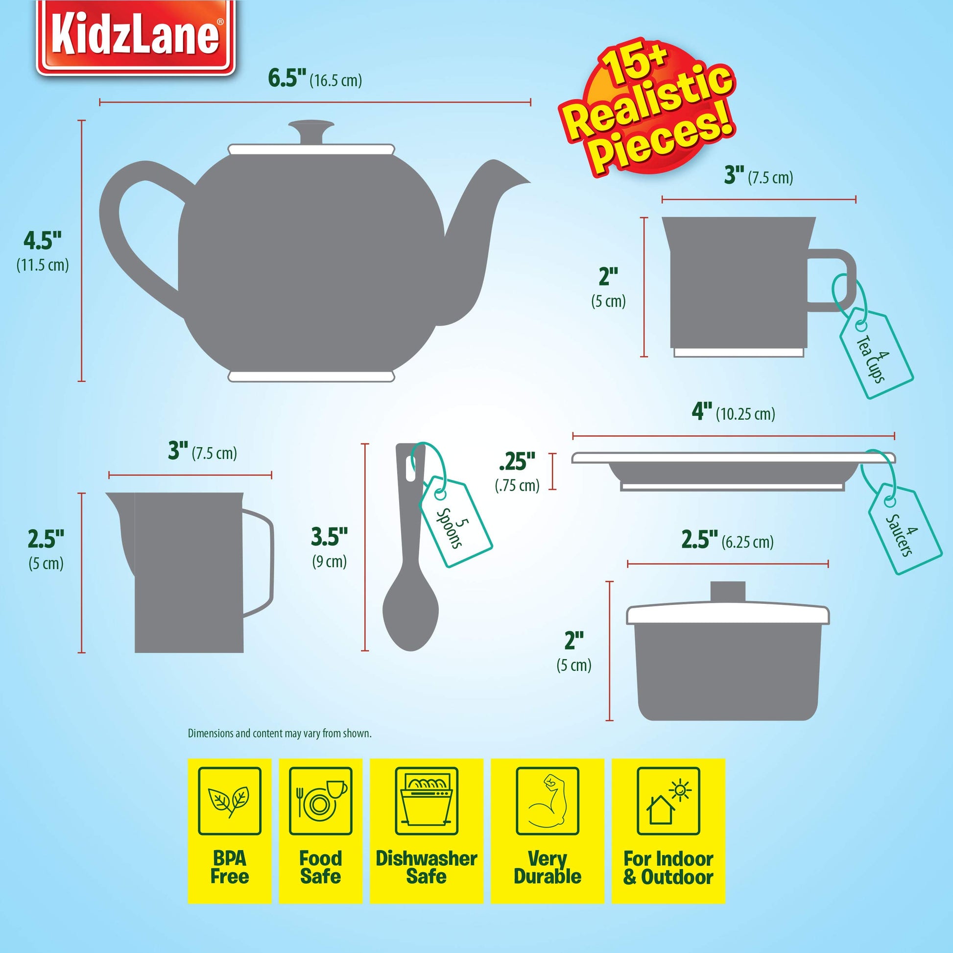 Kidzlane Play Tea Set, 15+ Durable Plastic Pieces, Safe and BPA Free for Childrens Tea Party and Fun