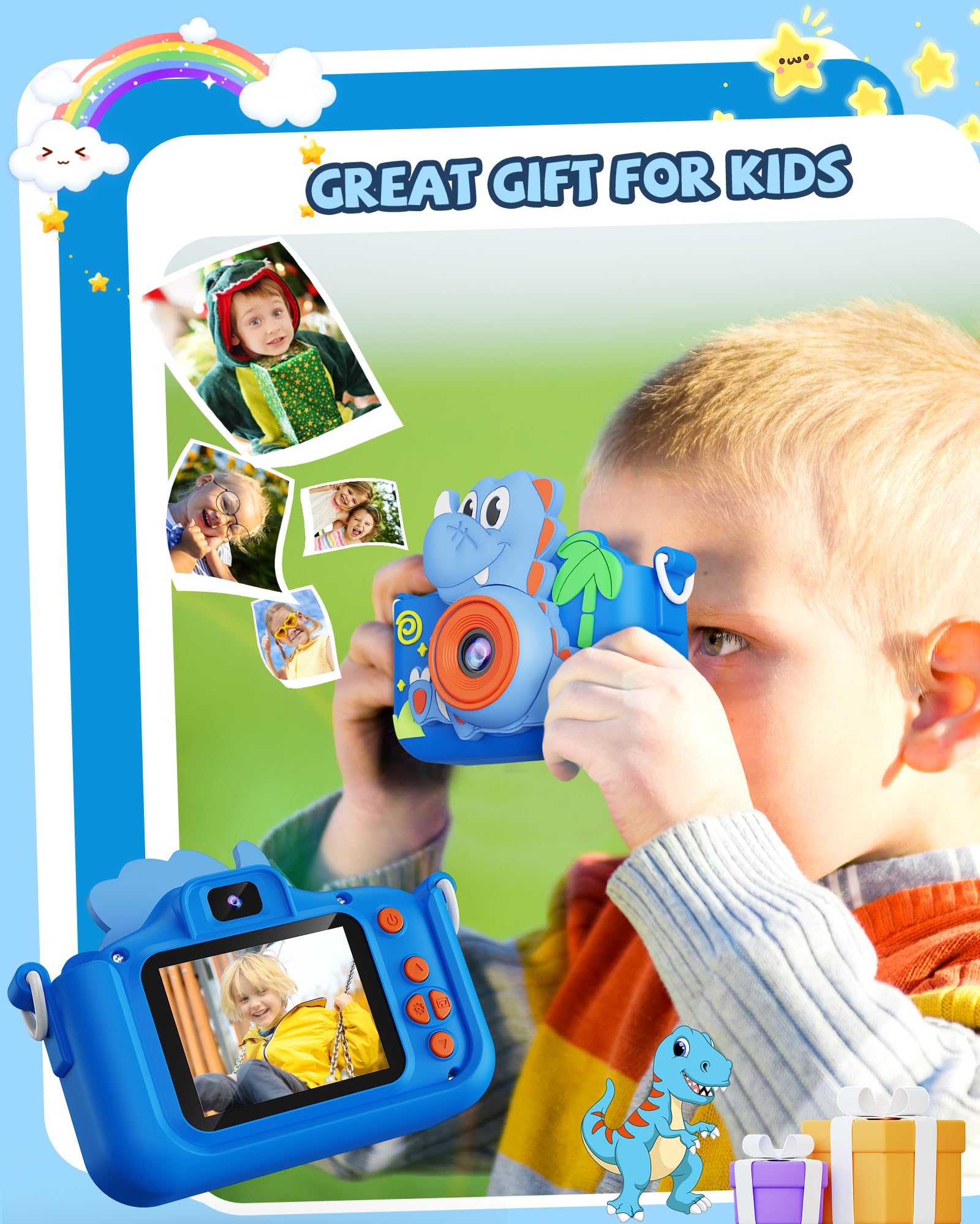 Kikapabi Kids Camera Dinosaur Toys For Boys, Christmas Birthday Gifts Toys For Boys Age 3-8, Toddler Camera Toys With Silicon Cu