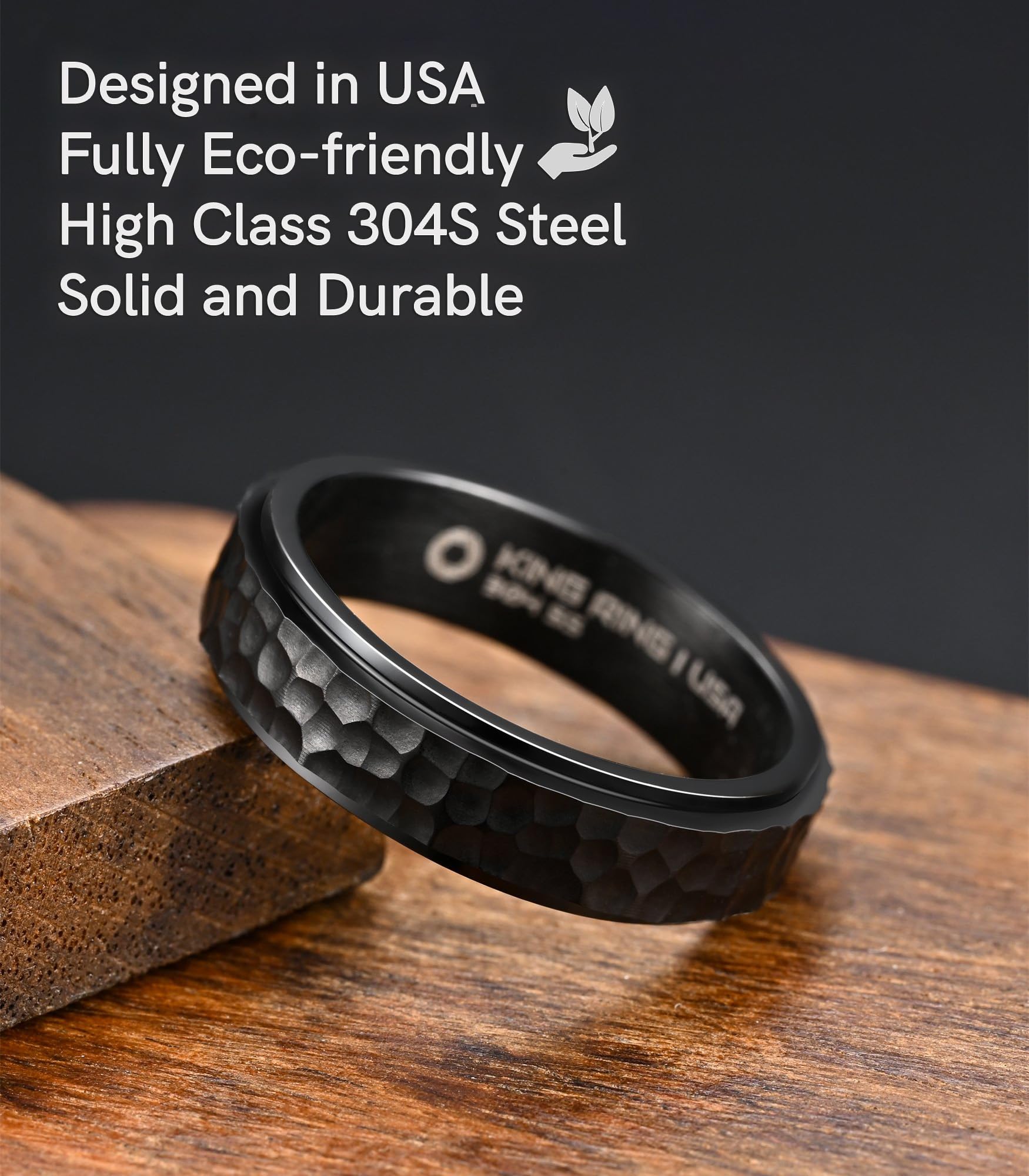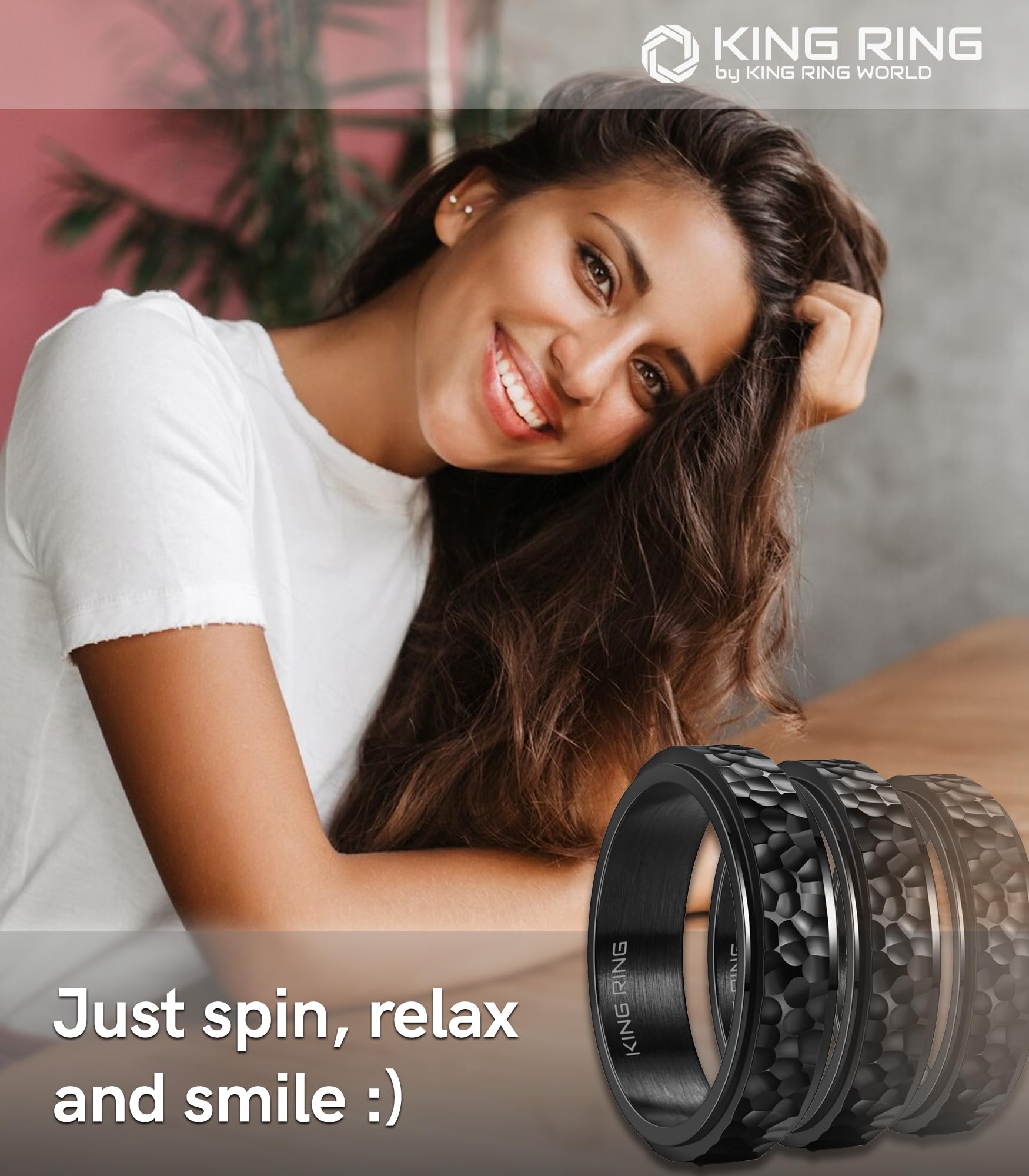 King Ring 6mm Spinner Hammered Ring - Stress Relief Fidget Ring for Men & Women K39V2 - Black 06
