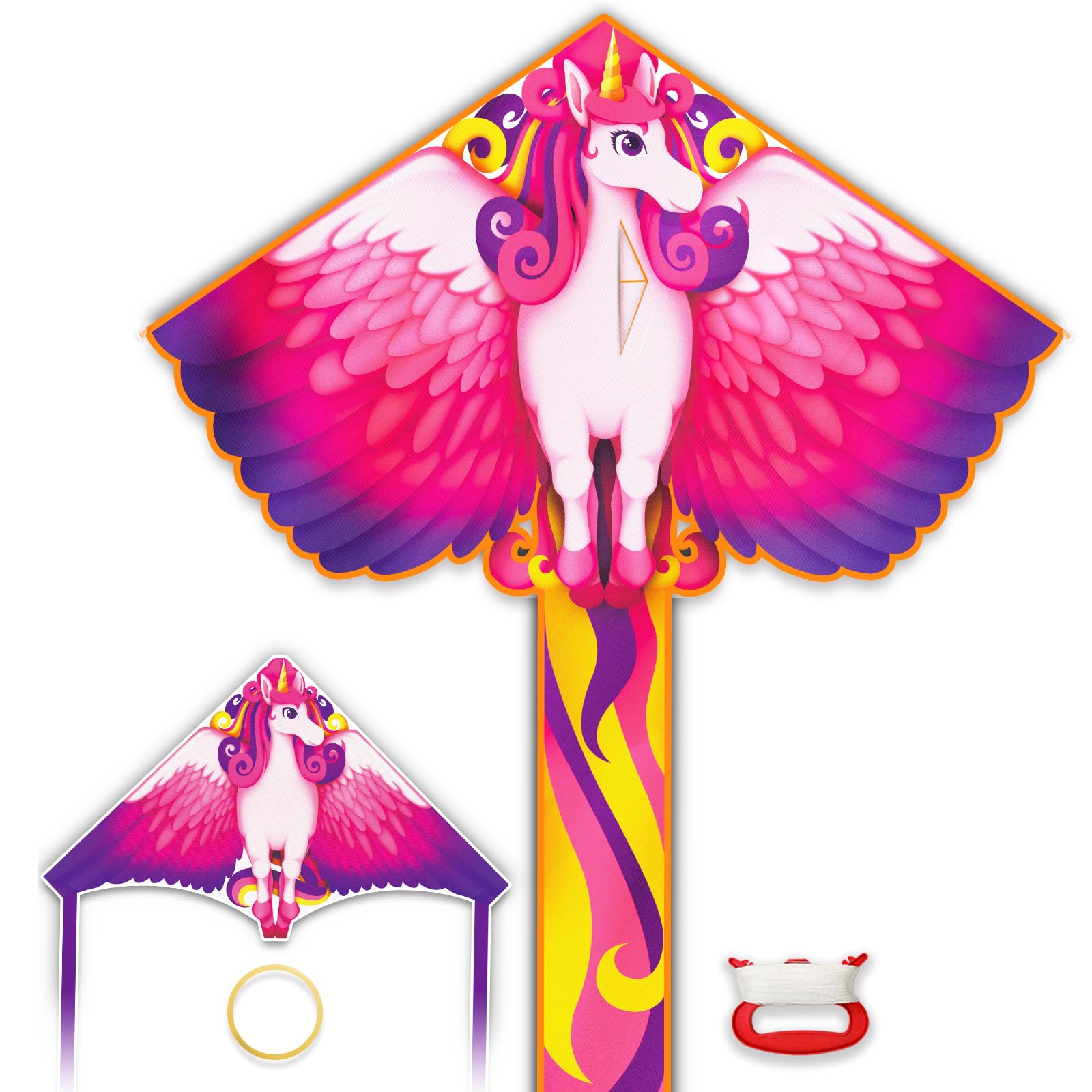 Kites for Kids - 2 Pack: Unicorn Kite & Mini Finger Launcher, Easy to Fly, Ages 4-12