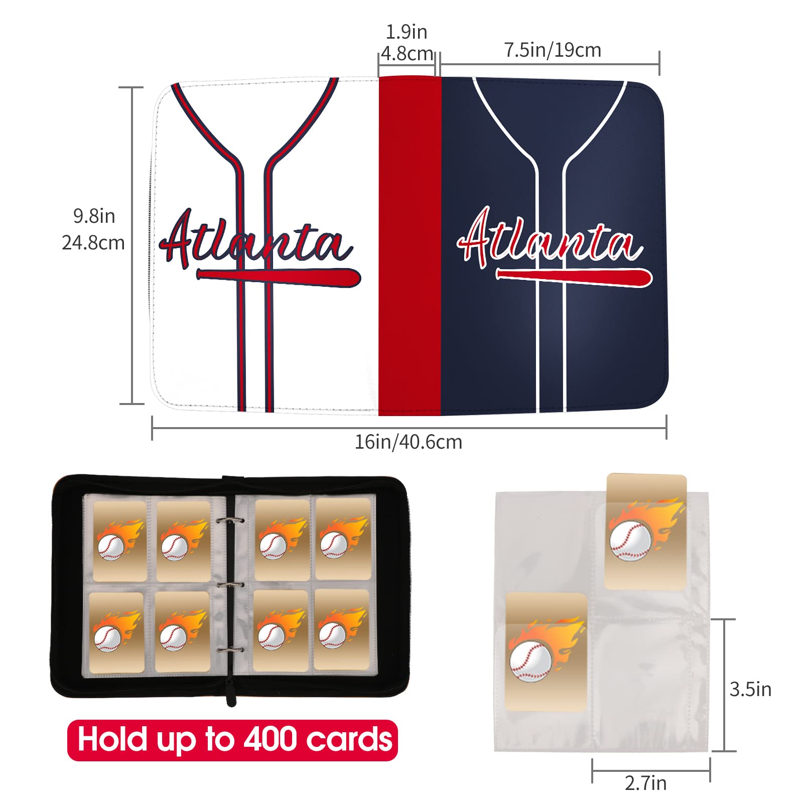 Kivolfun Baseball Card Binder With Sleeves, 400 Pocket, Atlanta Navy, 3 Ring Binder Storage Book Folder Organizer For Kids Gift