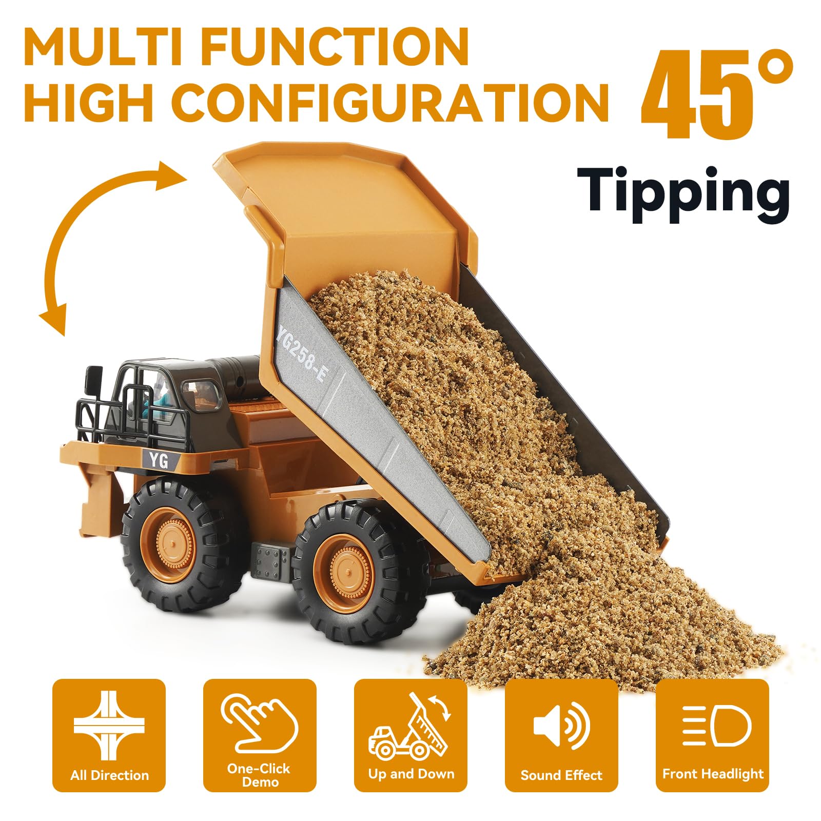 View compareKIZJORYA Remote Control Dump Truck, RC Construction Vehicle for Kids with 9 Channel Metal Bed Light Sound & Rechargeable Battery
