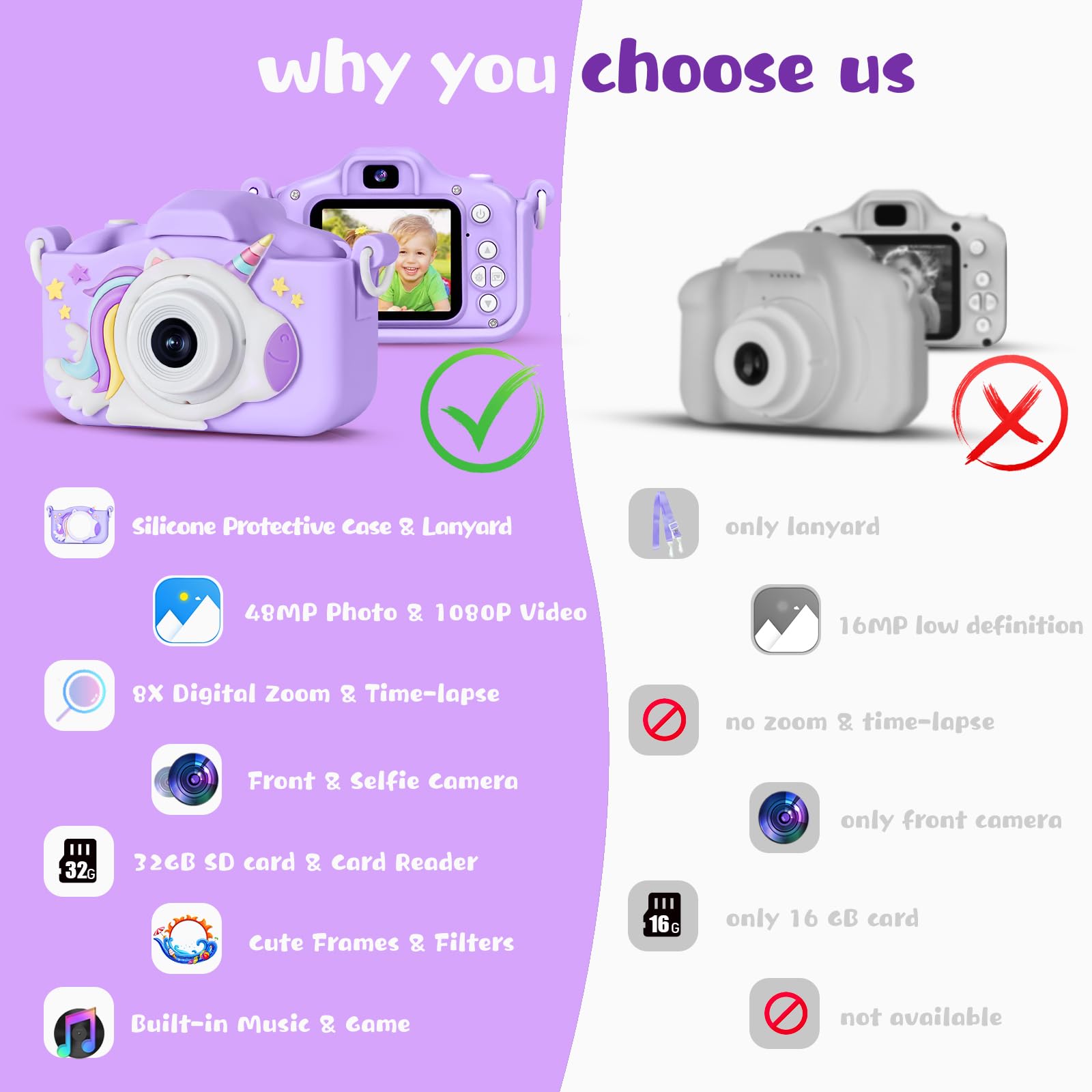 View compareKizjorya Upgraded 48Mp Kids Camera For Girls Boys 3-12, Video Selfie Camera-Christmas Birthday Gift For Toddler, Hd Digital Came