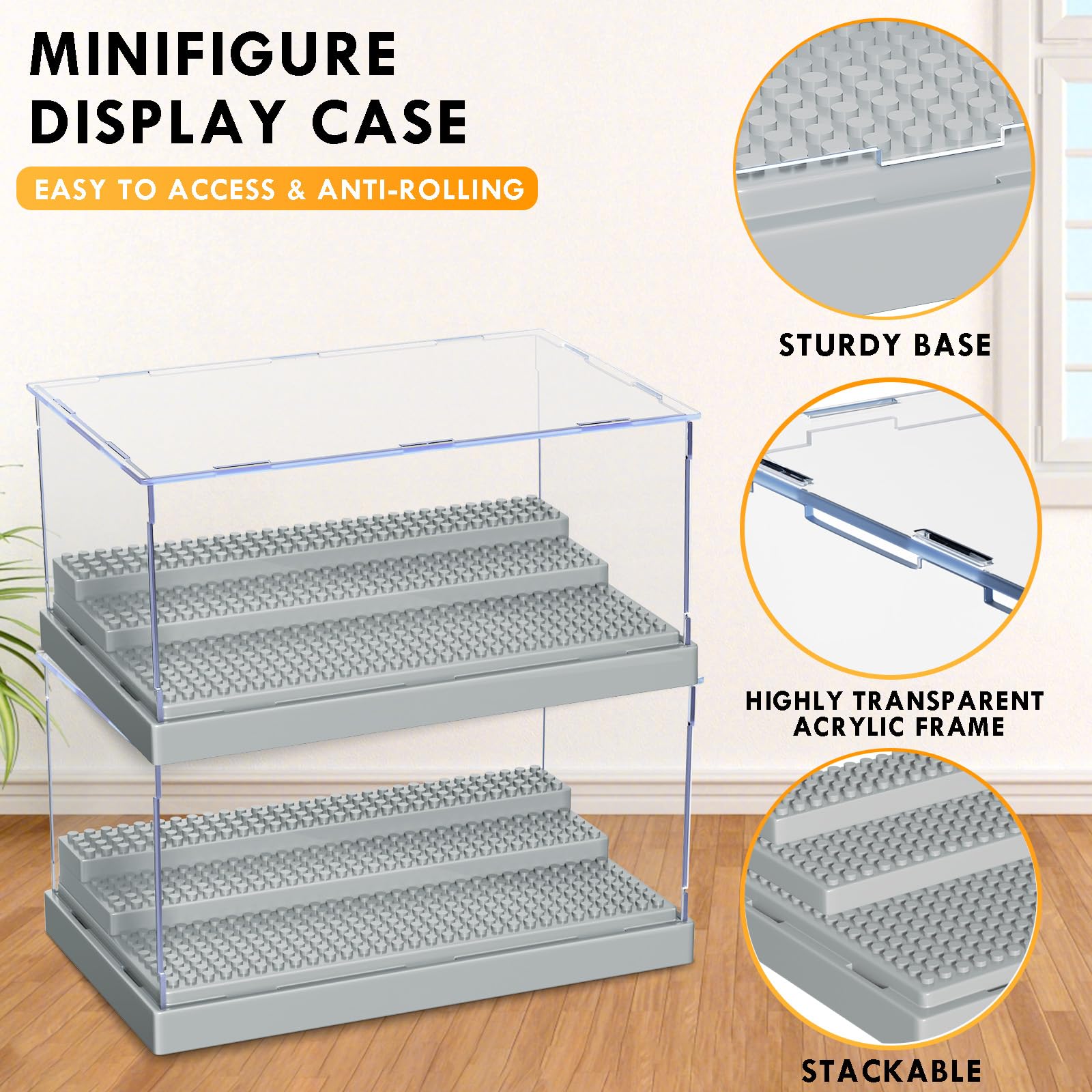 Kku Display Case For Minifigure Action Figures Blocks, Acrylic Minifigure Display Case Box Storage With 3 Movable Steps Gift For Kids Adults