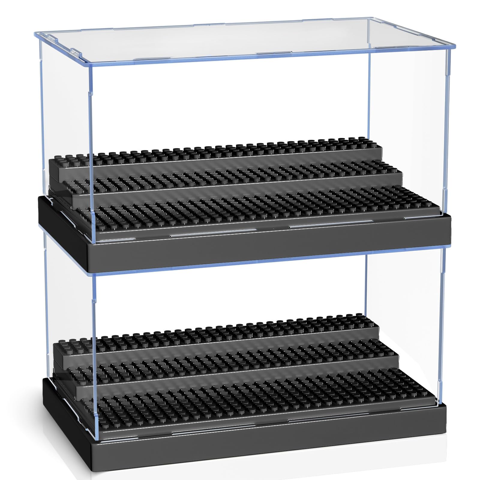 Kku Display Case For Minifigure Action Figures Blocks, Acrylic Minifigure Display Case Box Storage With 3 Movable Steps Gift For