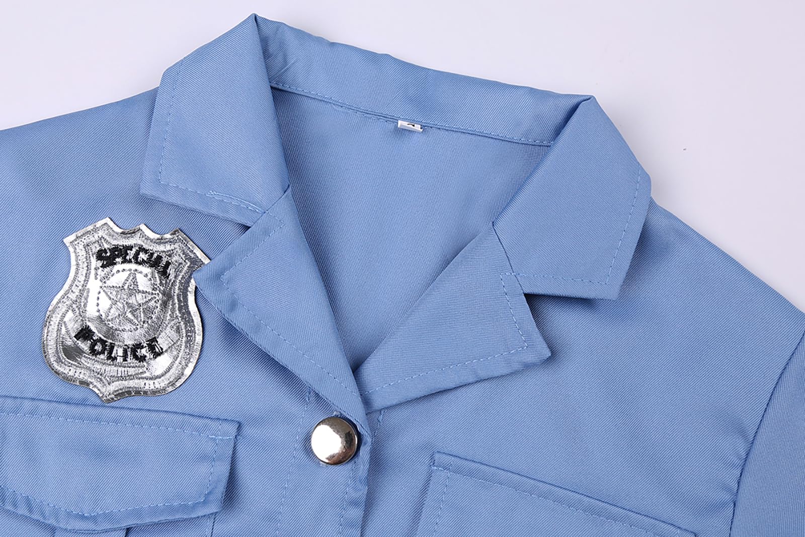 Koatobbor Girls Police Officer Costume Kids Cop Cosplay Outfits Uniform For Halloween Dress Up(5-6 Years)