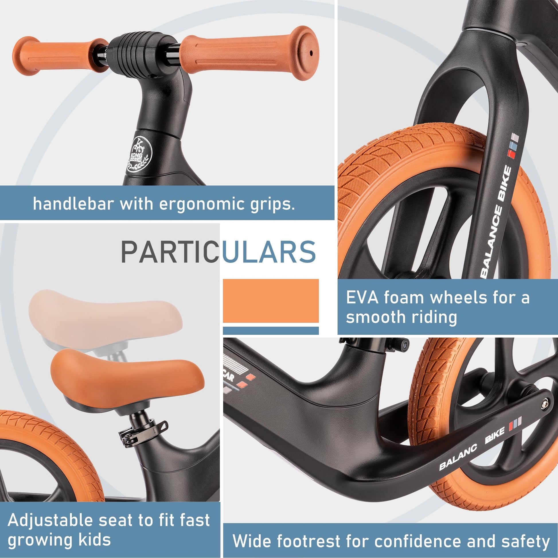 - Q: How does the balance bike help children learn to ride? A: This balance bike is designed without pedals, allowing children to develop their balance, coordination, and confidence, which eases their transition to a traditional pedal bike.