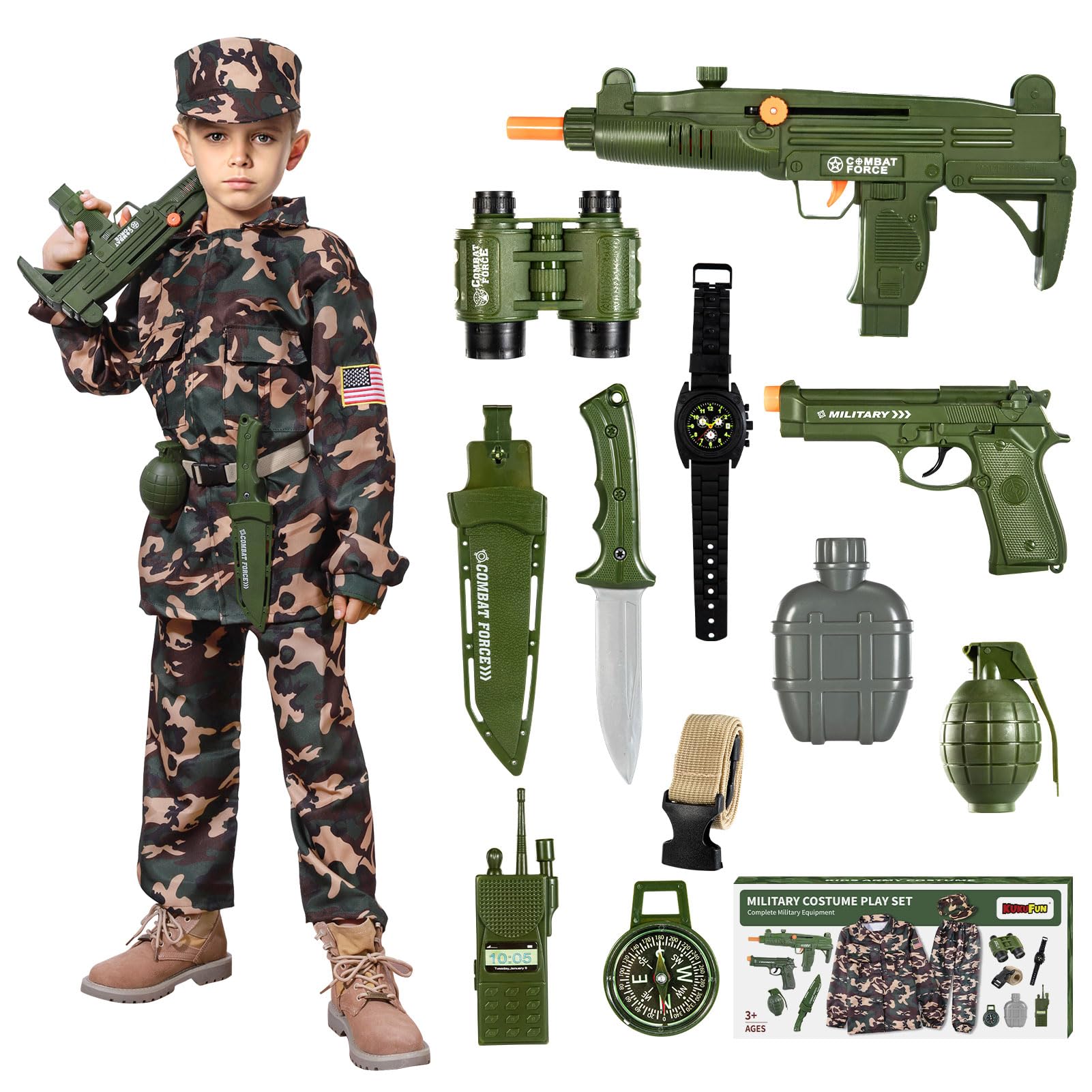 Kukufun Army Costume For Boys, Halloween Boys Costume Military Soldier Pretend Set With Toy Accessories, Halloween Party Costume