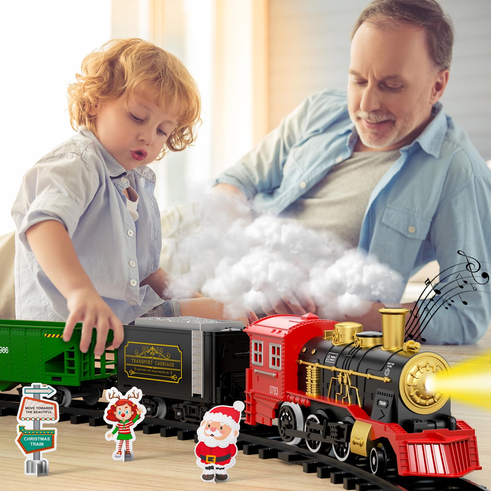Kukufun Electric Train Set For Kids, 43 Pcs Classic Train Toys Sets For Boys Girls Steam Locomotive Engine, Lights & Sound, Tracks, Christmas Gifts Birthday Toys For Age 3 4 5 6 7 8 9 Years Old Kids Toy Train Set Toys Kids Boys Girls Toddlers 1-3 2-3 2-4 3-4 3-5 4-7 6-8 8-14 2 3 4 5 6 7 8 Year Old Big Hobby Choo Choo Train Track Set Birthday Gift Electric Classic Automatic Model Decorations Indoor Outdoor Under Around The Christmas Tree